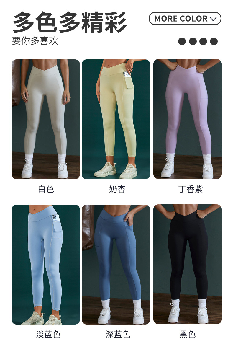 하이웨이스트 누드 양쪽 포켓 타이트 요가 팬츠 유럽 및 미국 V 허리 마이크로 플리츠 엉덩이 리프팅 스포츠 야외 피트니스웨어 여성용스토어 가기
