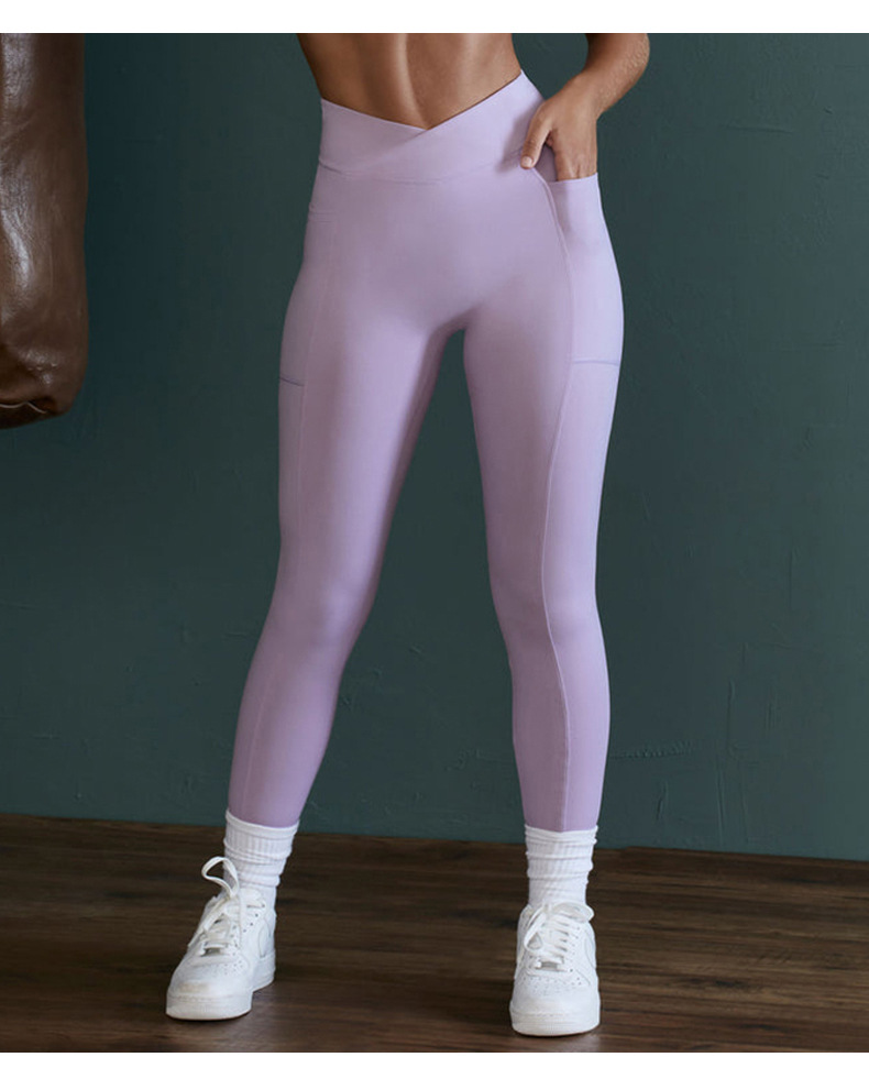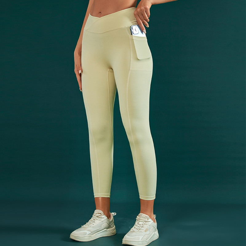 하이웨이스트 누드 양쪽 포켓 타이트 요가 팬츠 유럽 및 미국 V 허리 마이크로 플리츠 엉덩이 리프팅 스포츠 야외 피트니스웨어 여성용
