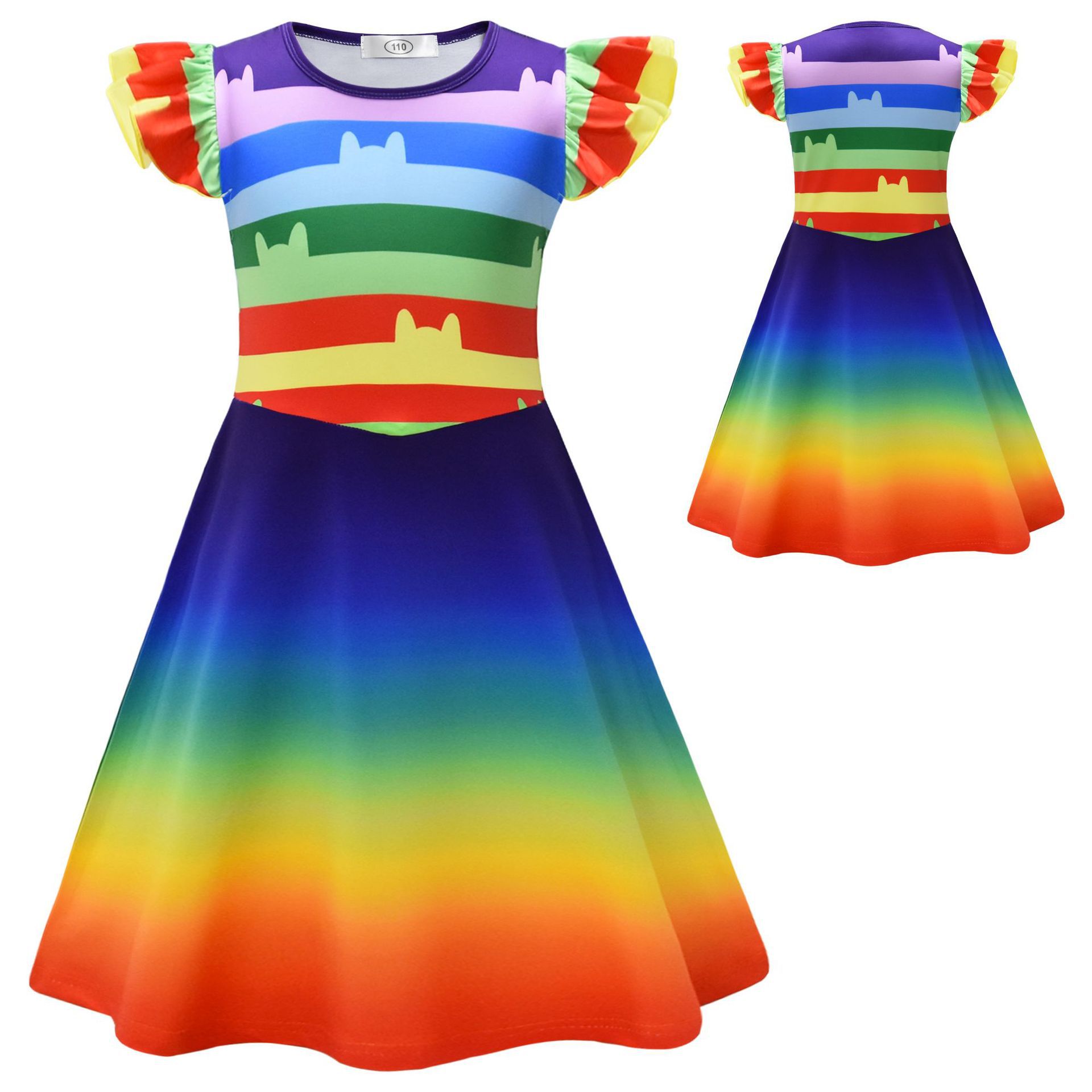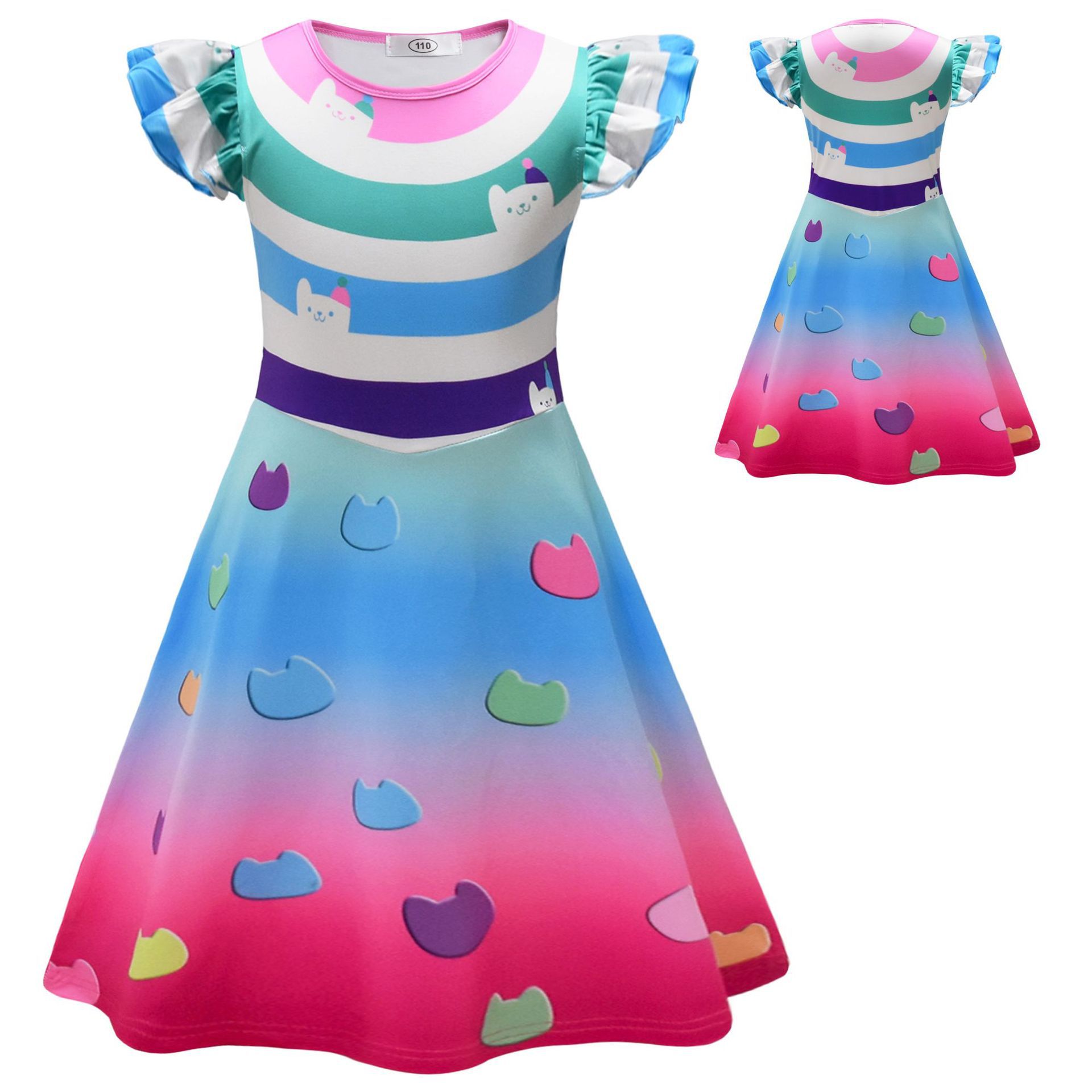 국경 간 핫 세일 Gaby's Doll House cos 같은 스타일 3D 프린트 소녀 플라잉 슬리브 드레스 + 가방스토어 가기