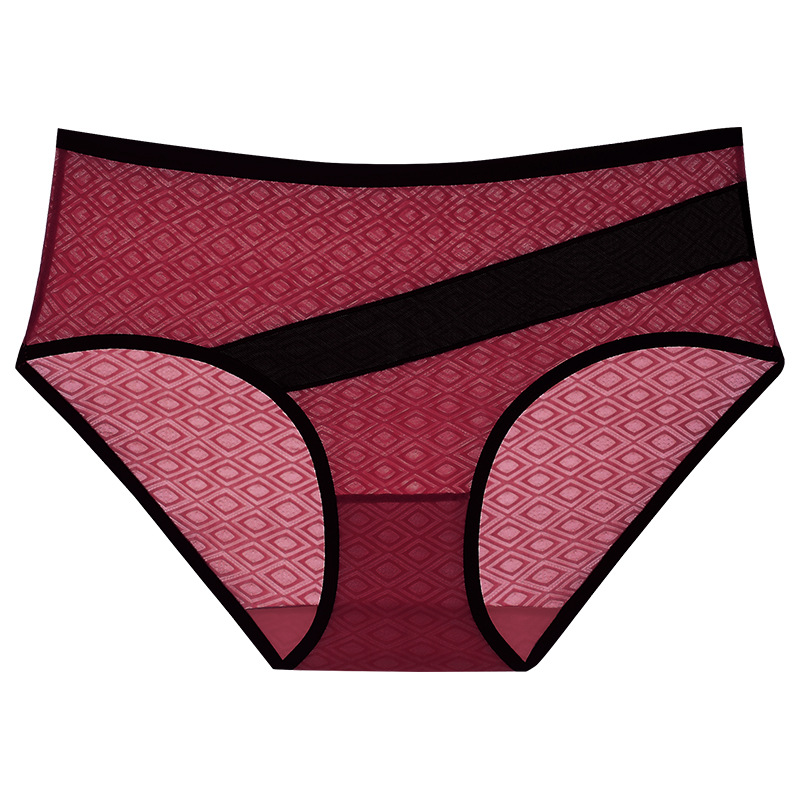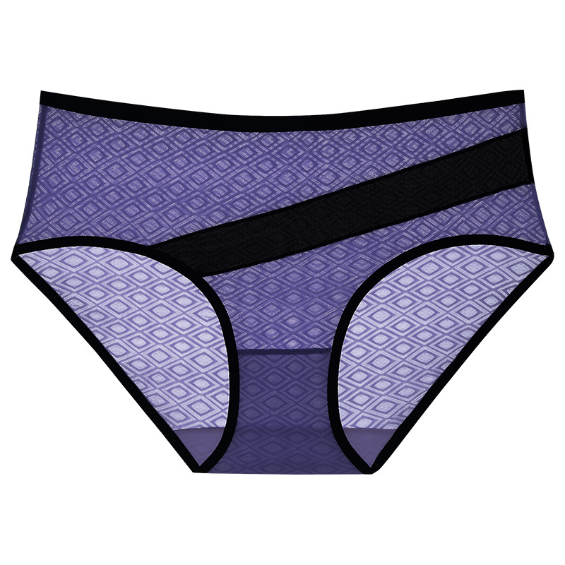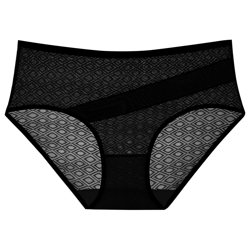여성용 크로스보더 빅사이즈 팬티, 다이아몬드 패턴 섹시 여성용 순면 가랑이 메쉬 투명 통기성 여성용 삼각 팬티, 수출용 21스토어 가기
