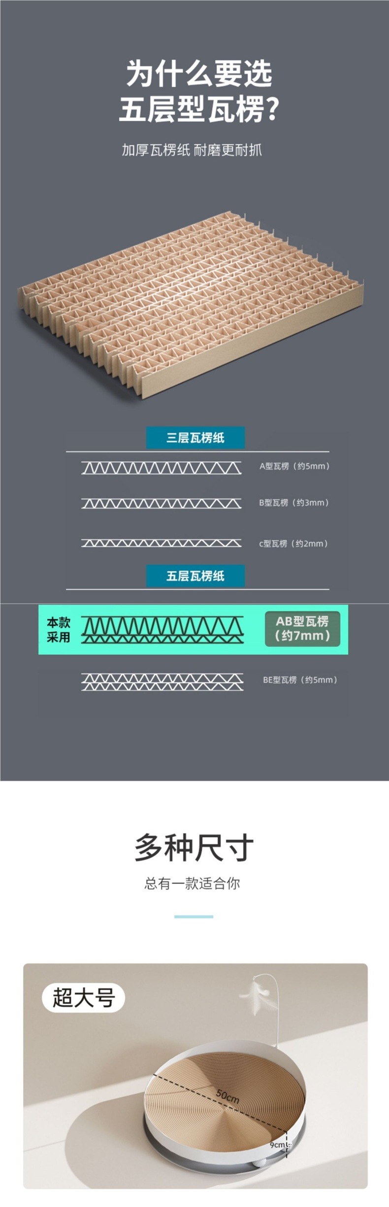 고양이 스크래치 보드는 내마모성, 부스러기 없음, 발톱 연삭, 둥근 고양이 둥지, 여름 고양이 발톱 긁힘 방지 고양이 장난감 3-in-1