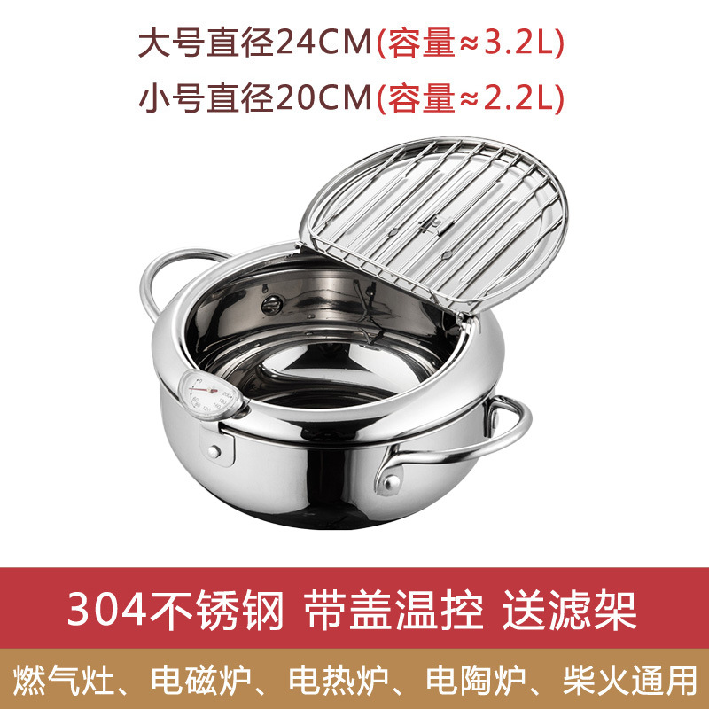 304 정확한 온도 조절 튀김 냄비 스테인레스 스틸 다기능 온도계 가정용 오일 컨트롤 냄비스토어 가기