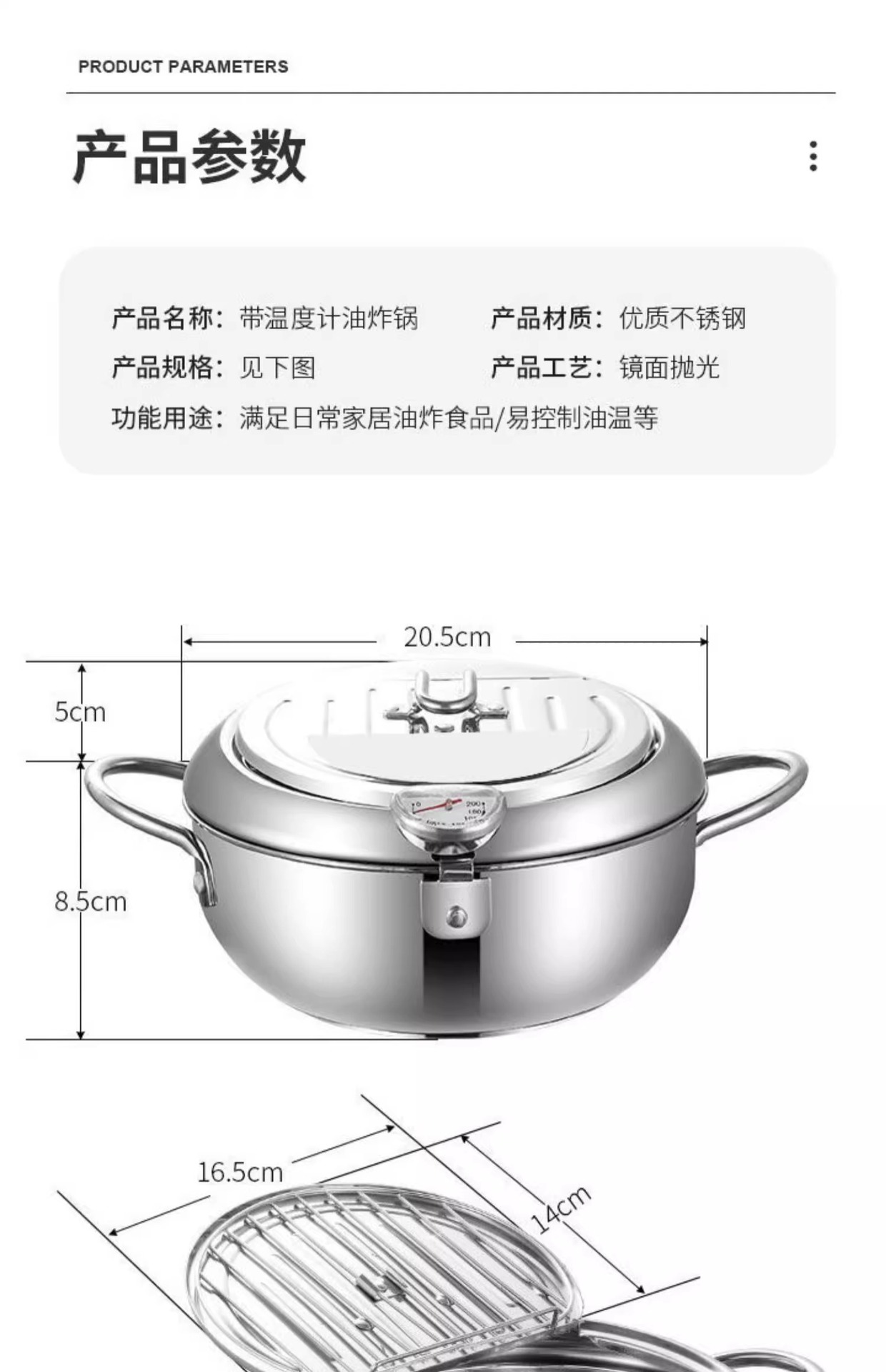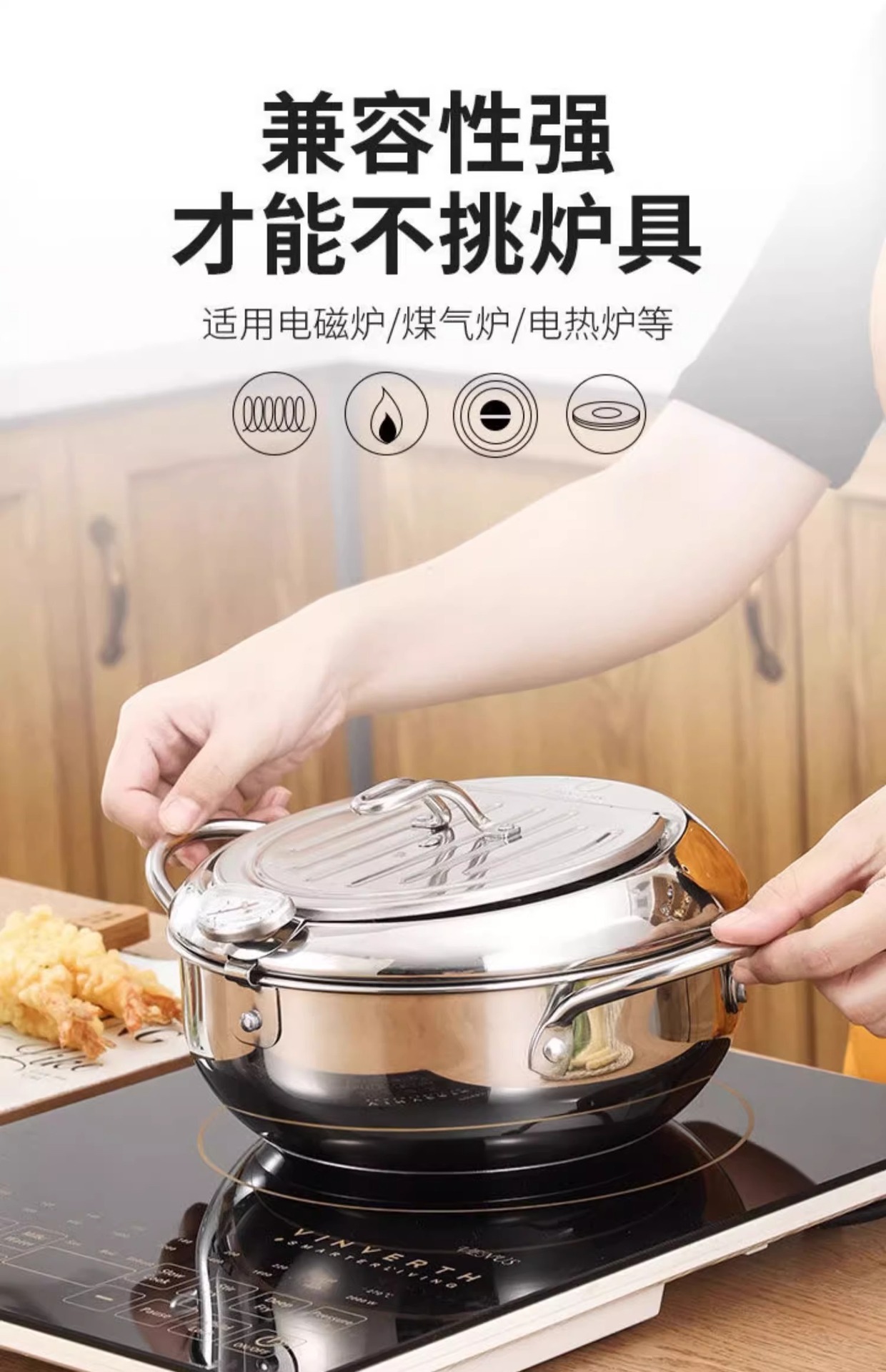 304 정확한 온도 조절 튀김 냄비 스테인레스 스틸 다기능 온도계 가정용 오일 컨트롤 냄비