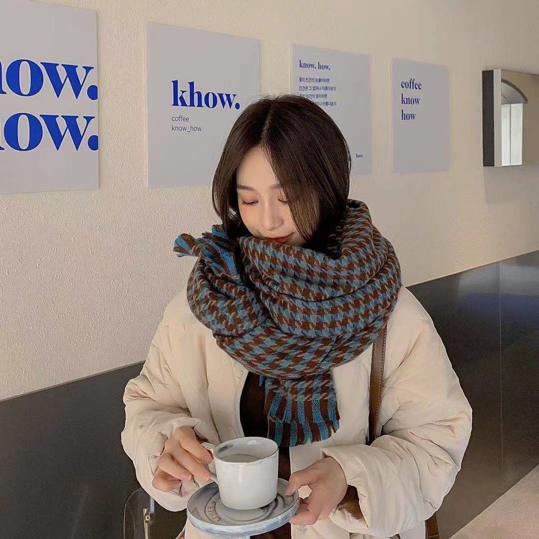 여성을위한 물 리플 격자 물떼새 격자 스카프 2025 새로운 가을, 겨울 한국 스타일 다목적 모조 캐시미어 목도리 따뜻한 스카프스토어 가기