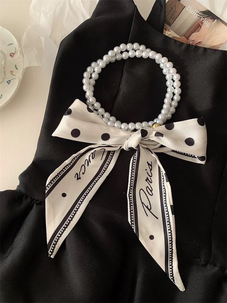 여성을위한 프랑스 복고풍 봄, 여름 진주 목걸이 2025 새로운 실크 스카프 쇄골 체인 머리띠 라이트 럭셔리 틈새 목걸이
