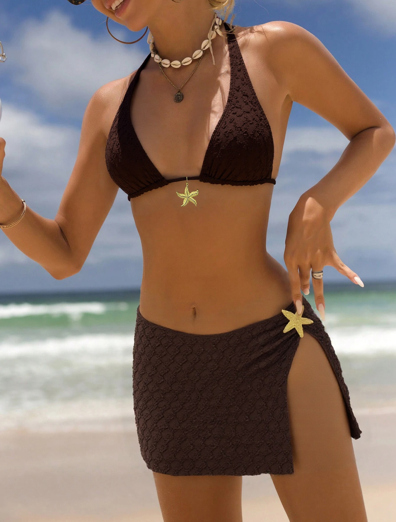 • 하이엔드 메일라드 브라운 쓰리피스 비키니 세트
