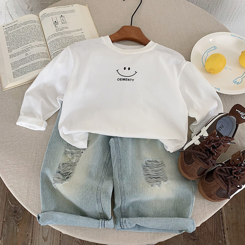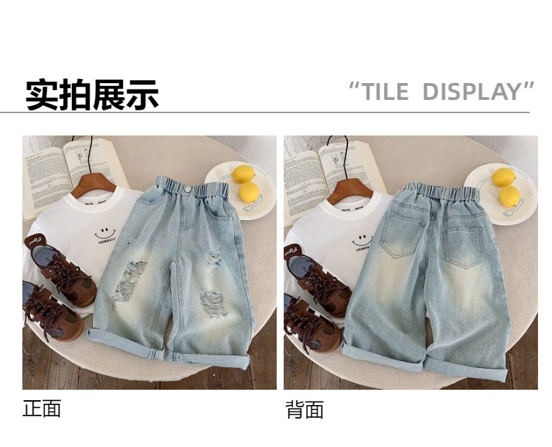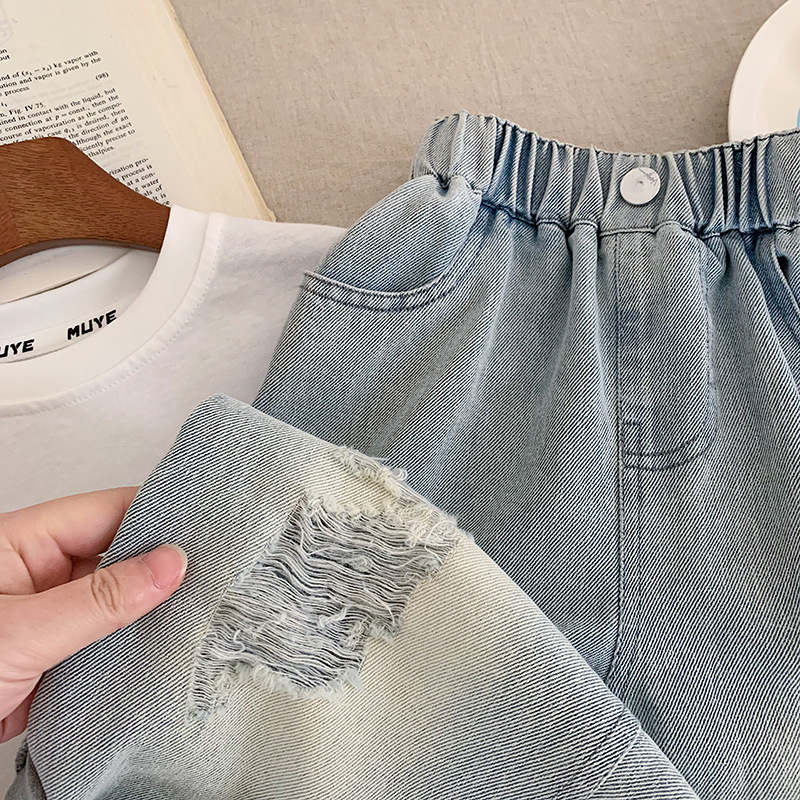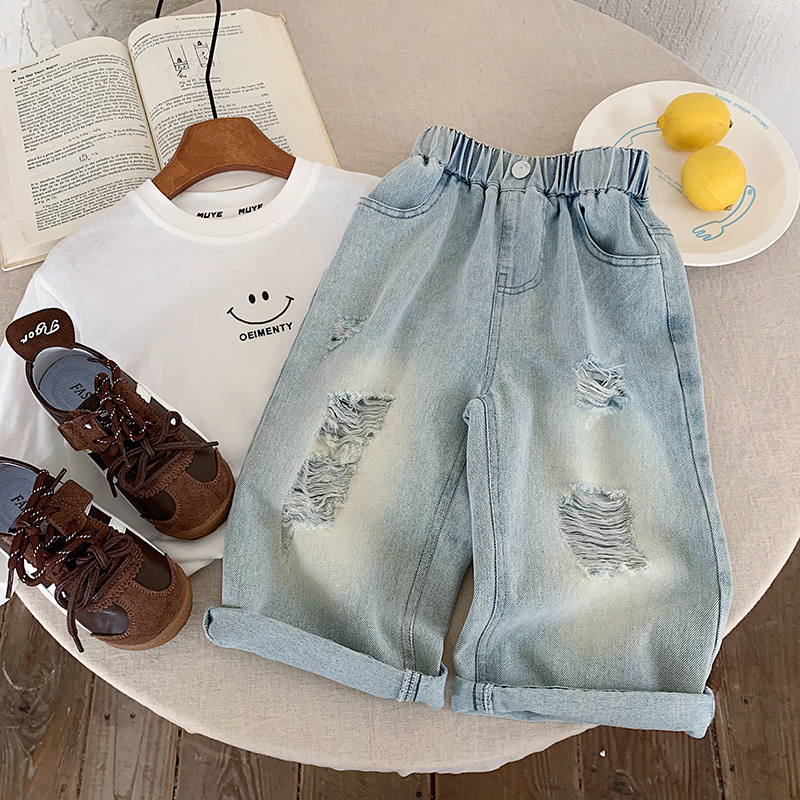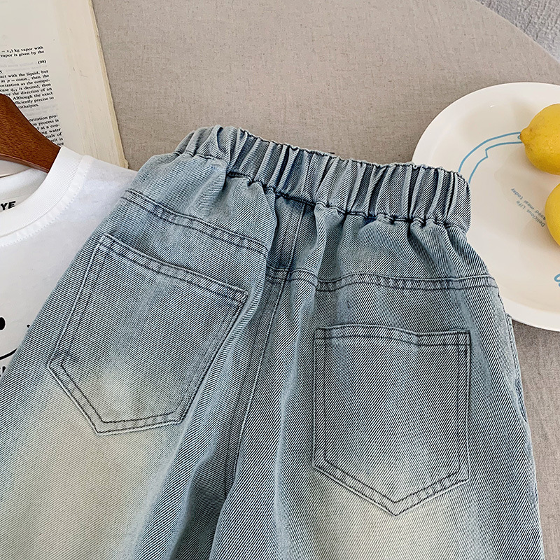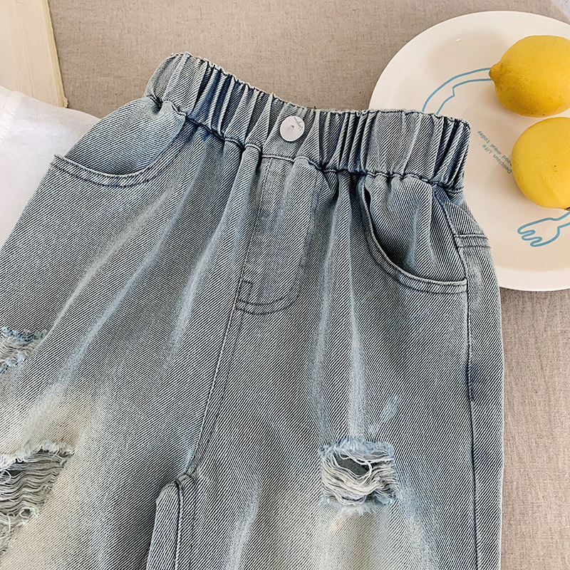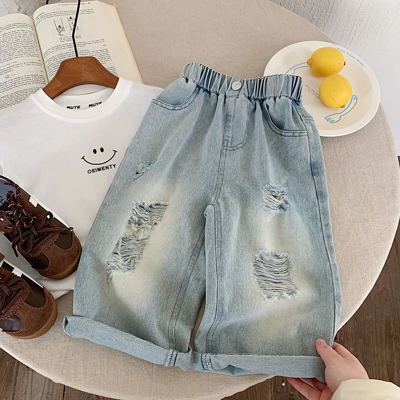 아동용 봄 청바지 2025 새로운 패션 찢어진 아동복 소년 한국 스타일 다용도 스트레이트 바지 유행