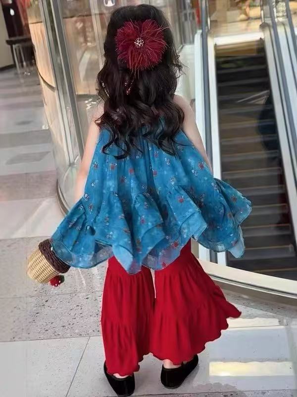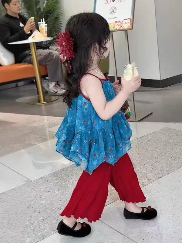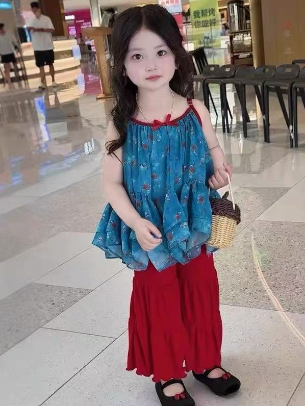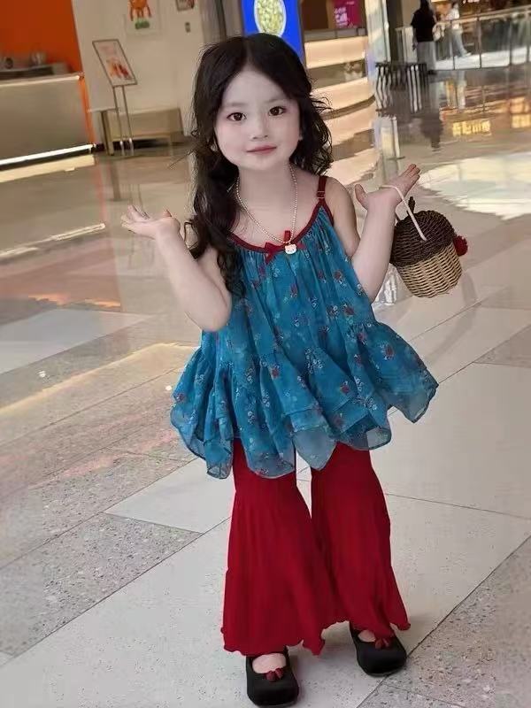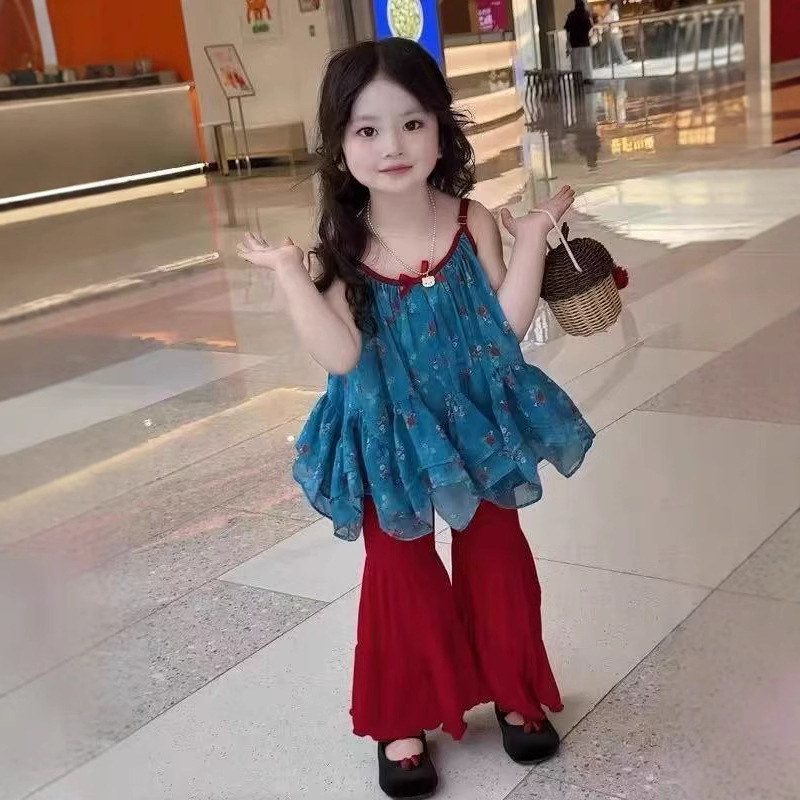 여아 정장 아동복 여아 리조트 스타일 서스펜더 베이비돌 아동용 베이비 쉬폰 러플 탑 500528