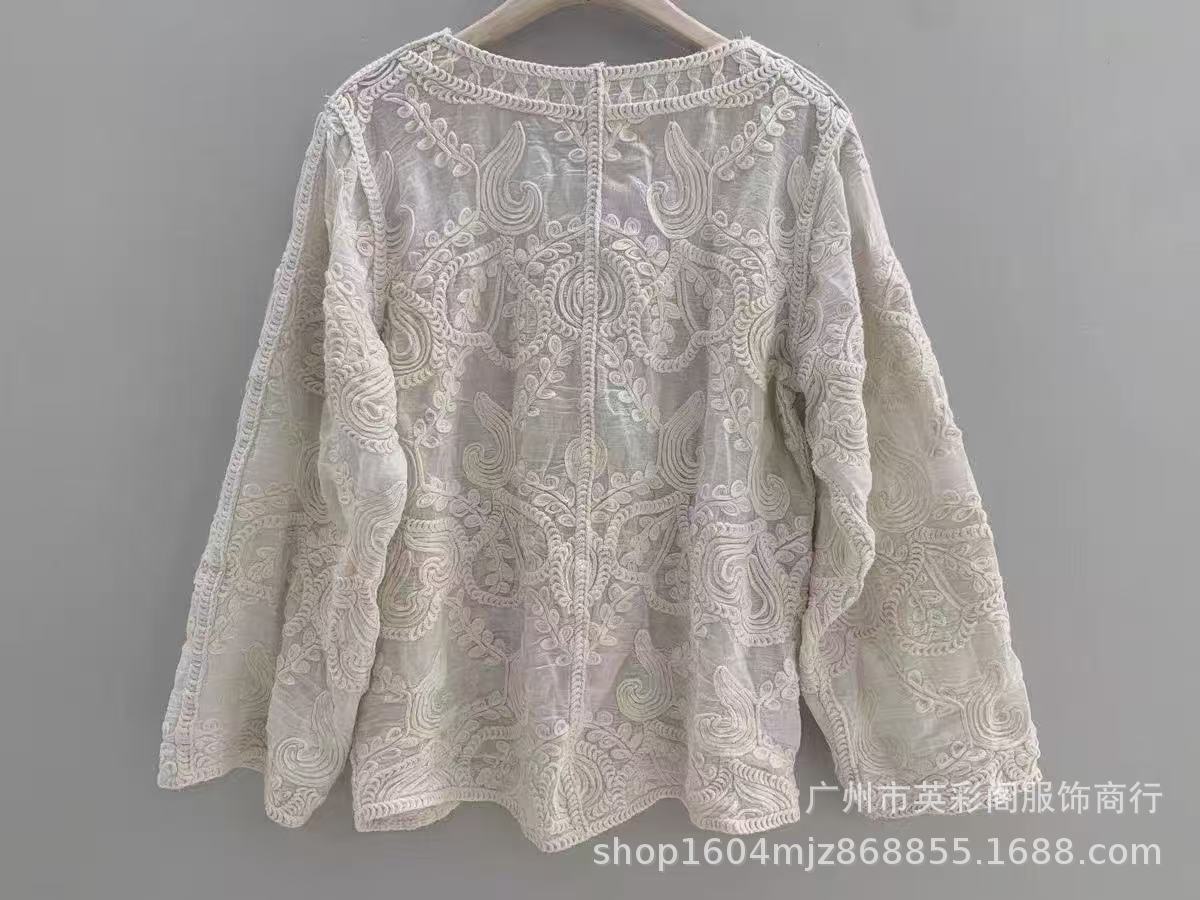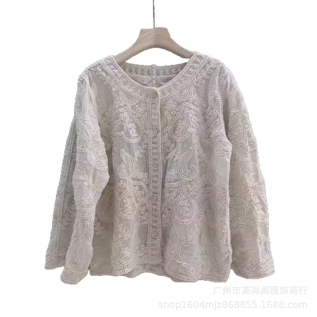 여성을 위한 봄 하이엔드 헤비듀티 자수 스플라이스 긴팔 셔츠, 심플하고 우아한 레이스 가디건, 다용도 탑스토어 가기