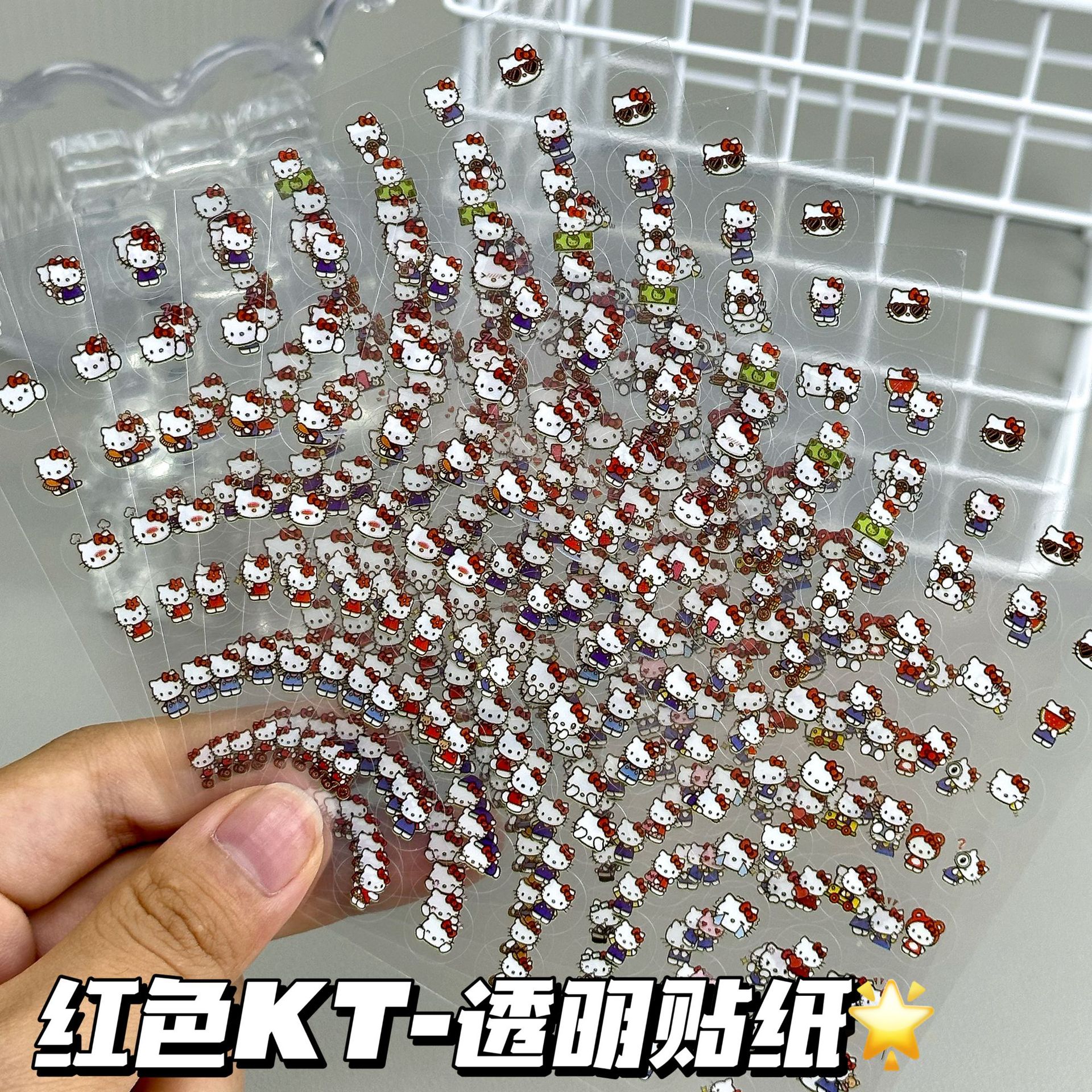 빨간색 kt 슈퍼 귀여운 만화 스티커 diy 고가치 장식 스티커 학생 펜 홀더 투명 평면 스티커 도매