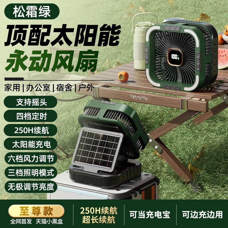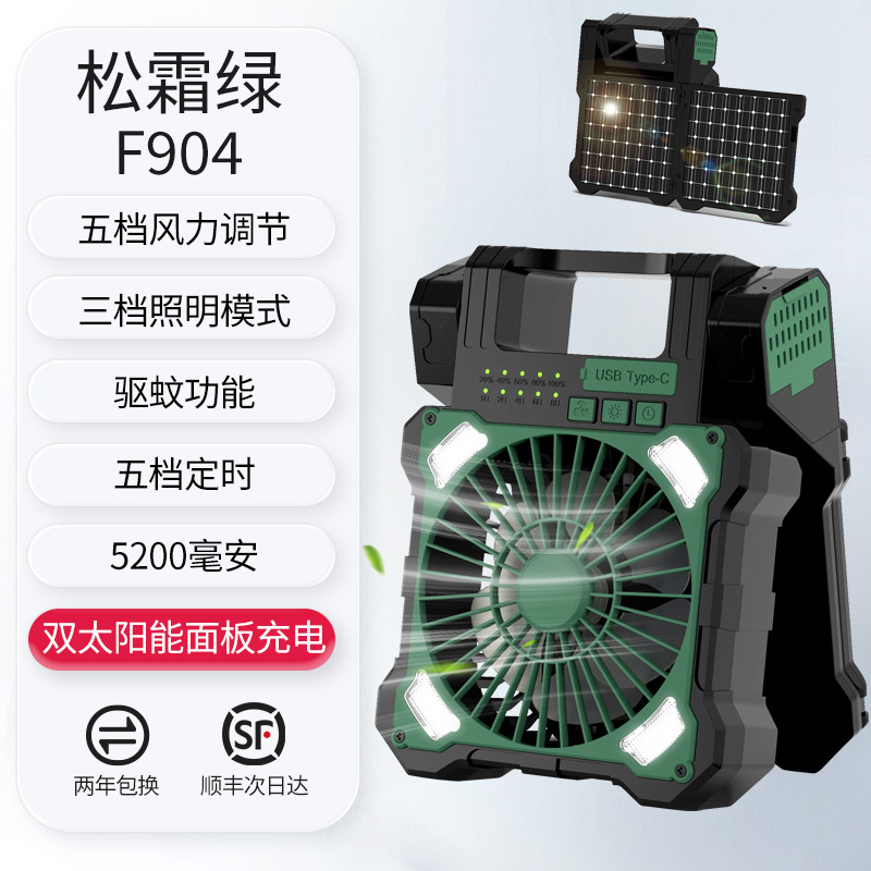 • 흔들리는 머리 태양광 모델 - 파인 프로스트 그린 [10000mAh USB 충전/태양광 충전 디지털 디스플레이 화면 6단계 바람, 머리를 좌우로 흔들어 조명 타이밍]