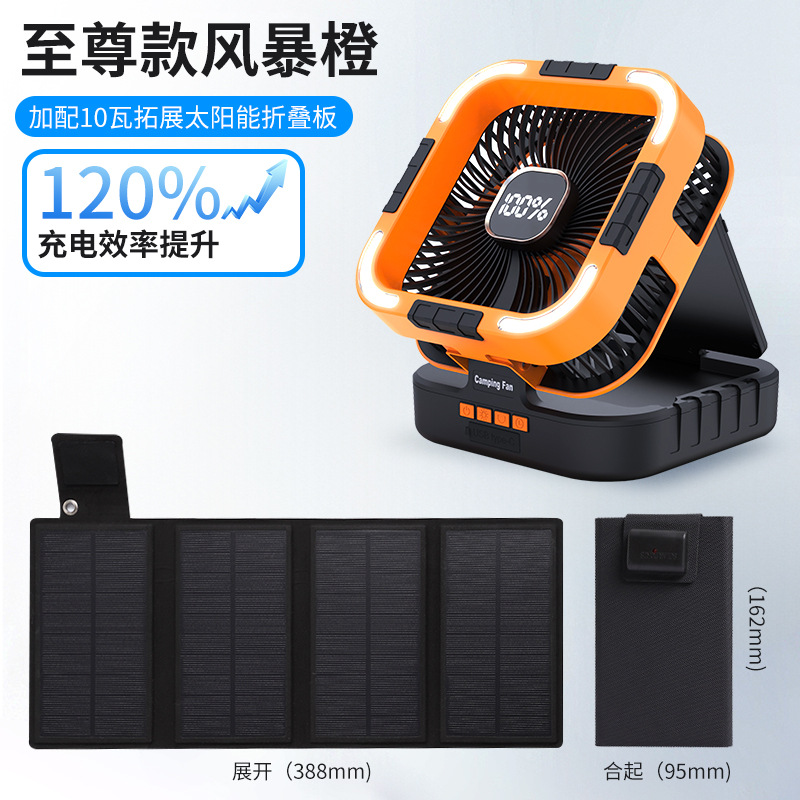 • 표준 태양광 모델 - 스톰 오렌지 [10000mAh USB 충전/태양광 충전, 4단계 바람, 타이머, 야간 조명 손전등]