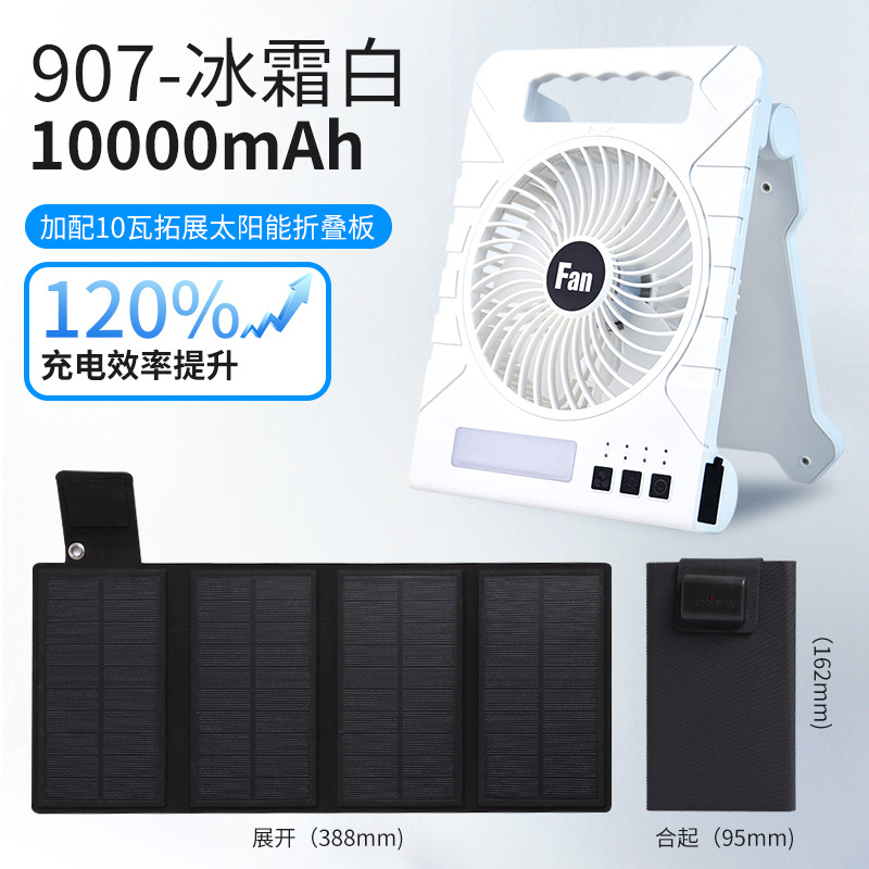 • 표준 태양광 모델 - 프로스트 화이트 [10000mAh USB 충전/태양광 충전, 4단계 바람, 타이머 야간 조명 손전등]