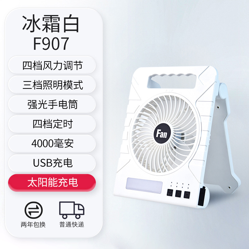 • 표준 태양광 모델 - 프로스트 화이트 [4000mAh USB 충전/태양광 충전, 4단계 바람, 타이머, 야간 조명, 손전등]