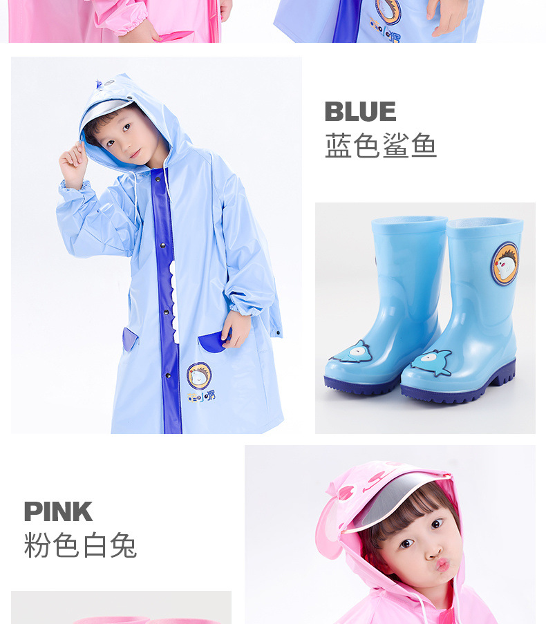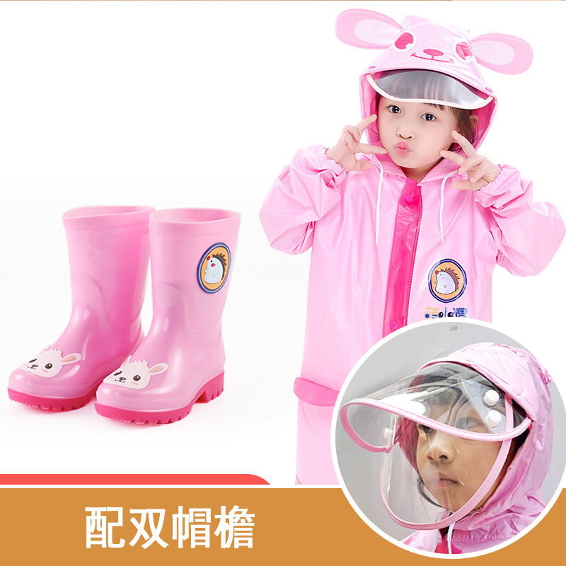 어린이 비옷과 장화 세트 소년과 소녀 유치원 소년과 소녀 초등학생 학교 가방 아기 비옷