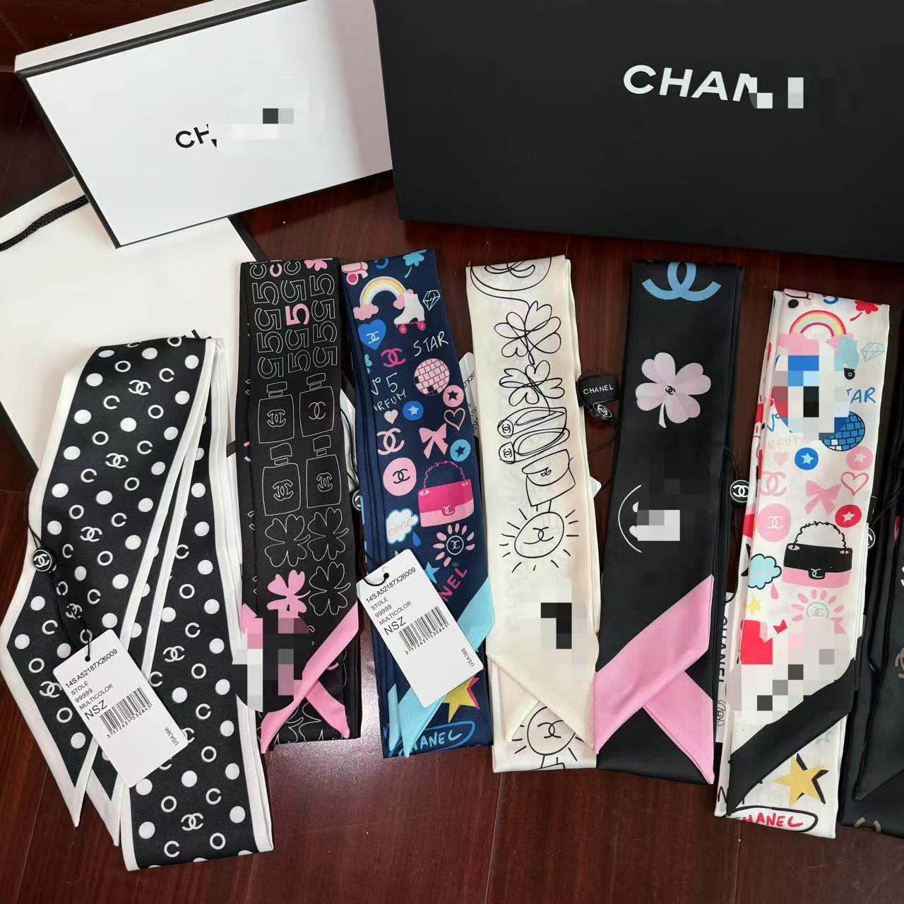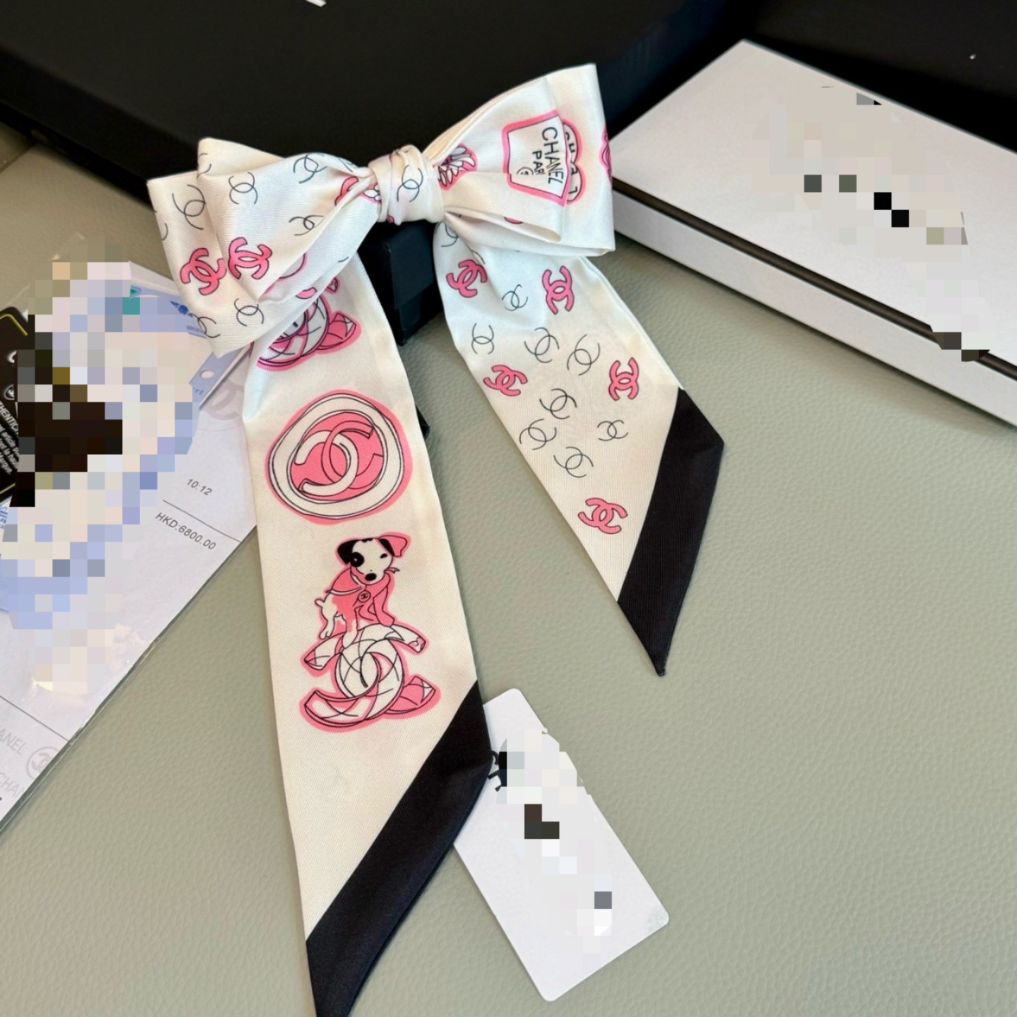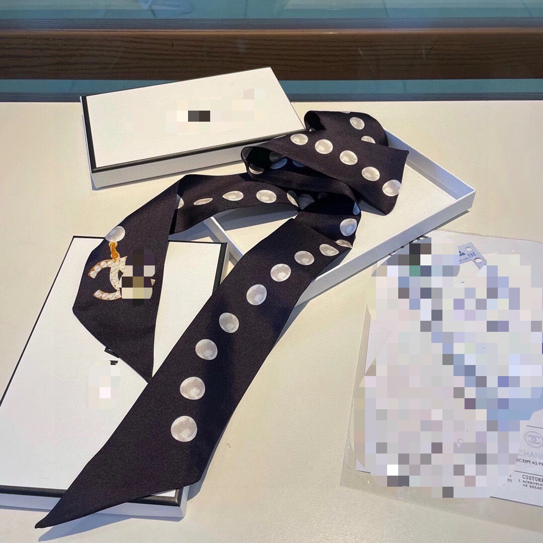 프렌치 스타일 시뮬레이션 실크 스카프, 핸들 리본, 폴카 도트 마름모 머리띠, 리본 스카프 재고 있음