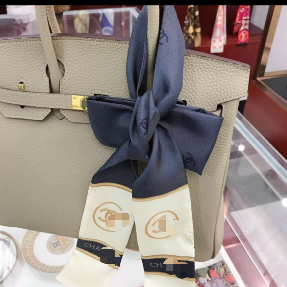 프렌치 스타일 시뮬레이션 실크 스카프, 핸들 리본, 폴카 도트 마름모 머리띠, 리본 스카프 재고 있음스토어 가기