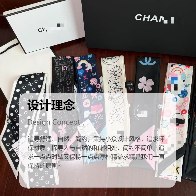法式仿真丝材质长条小丝巾
