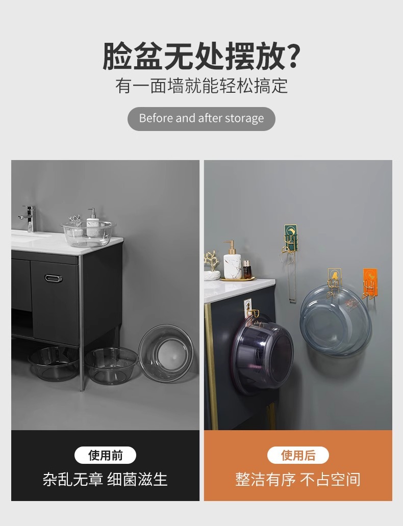벽걸이 욕실 세면대 걸이, 구멍이 없는 욕실 세면대 걸이, 수납 선반, 강력 접착 후크스토어 가기