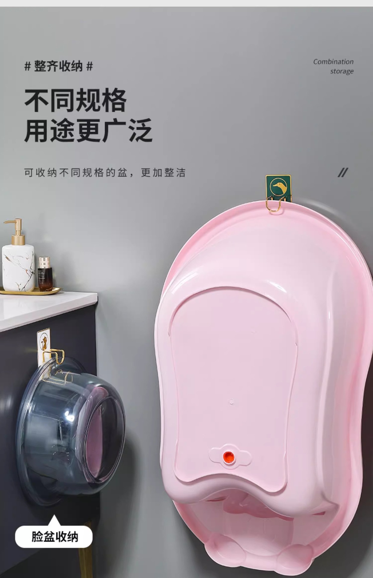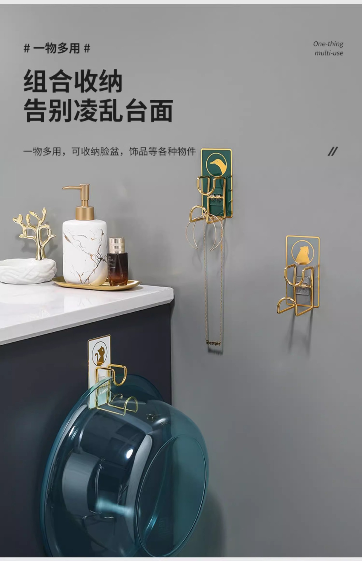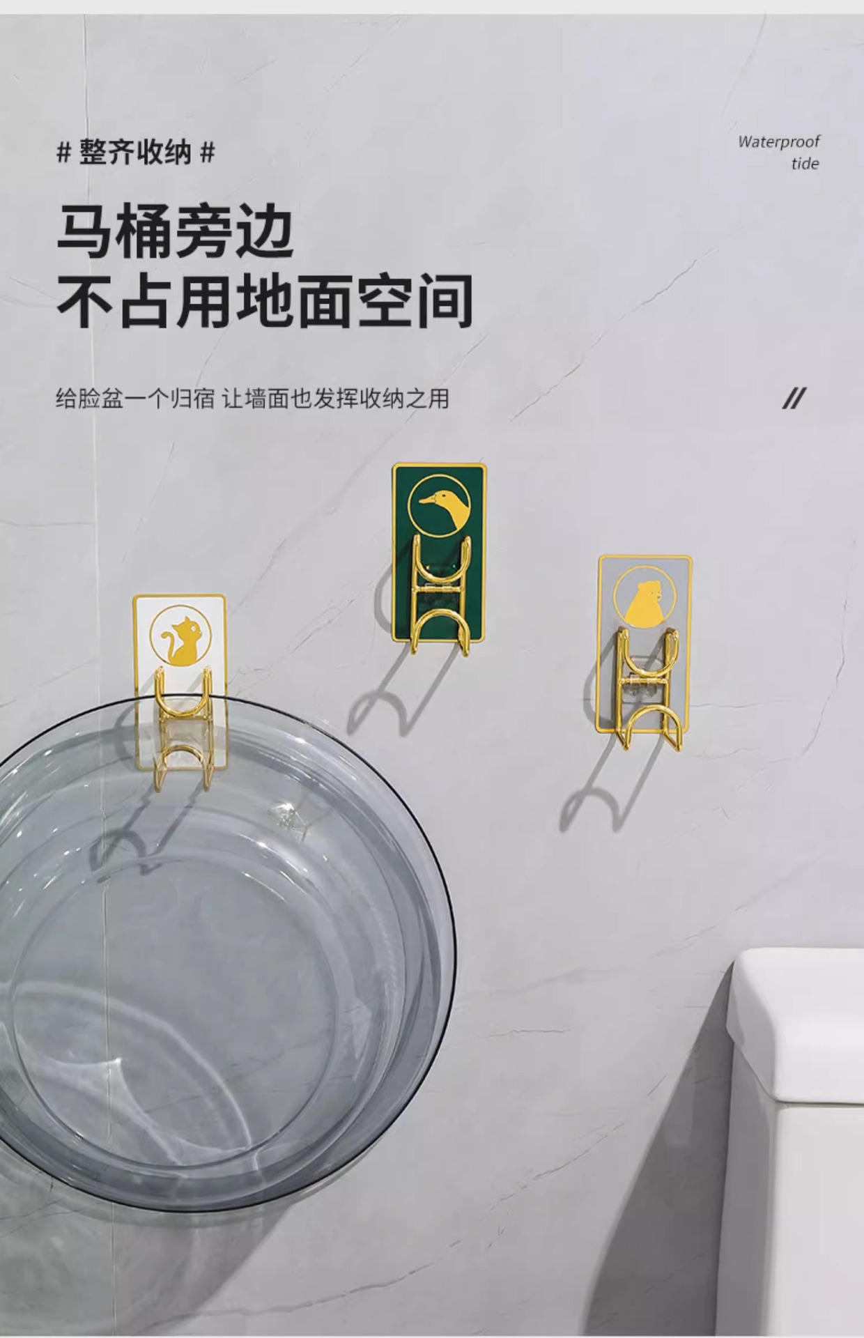 벽걸이 욕실 세면대 걸이, 구멍이 없는 욕실 세면대 걸이, 수납 선반, 강력 접착 후크