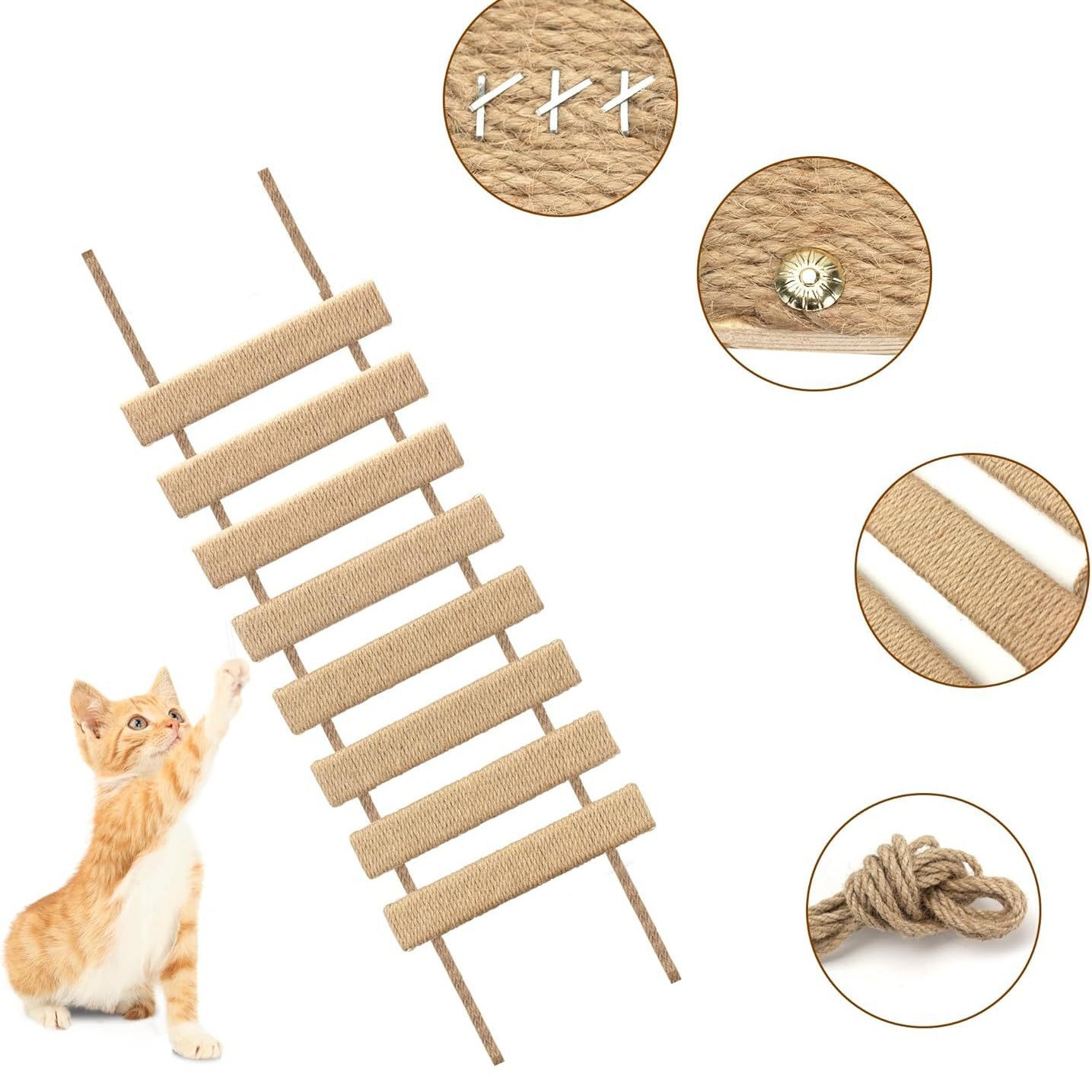 국경 간 현수교, 수제 단단한 고양이 클라이밍 프레임, 로프 사다리 액세서리, 사다리, 고양이 소프트 사다리, 고양이 둥지, 고양이 대마 로프 땋은 사다리
