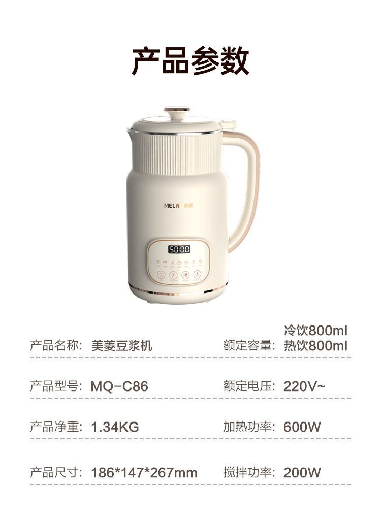 Meiling MQ-C86 가정용 두유 기계 소형 다기능 무세척 및 필터링 가능 예약 가능 316 스테인레스 스틸스토어 가기