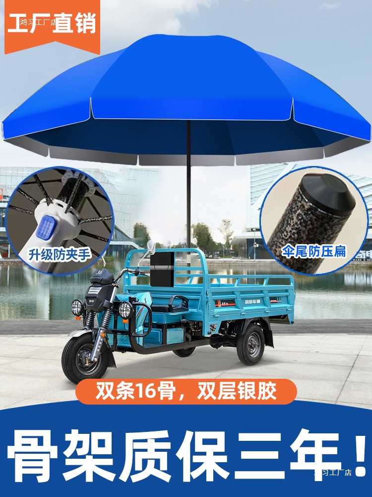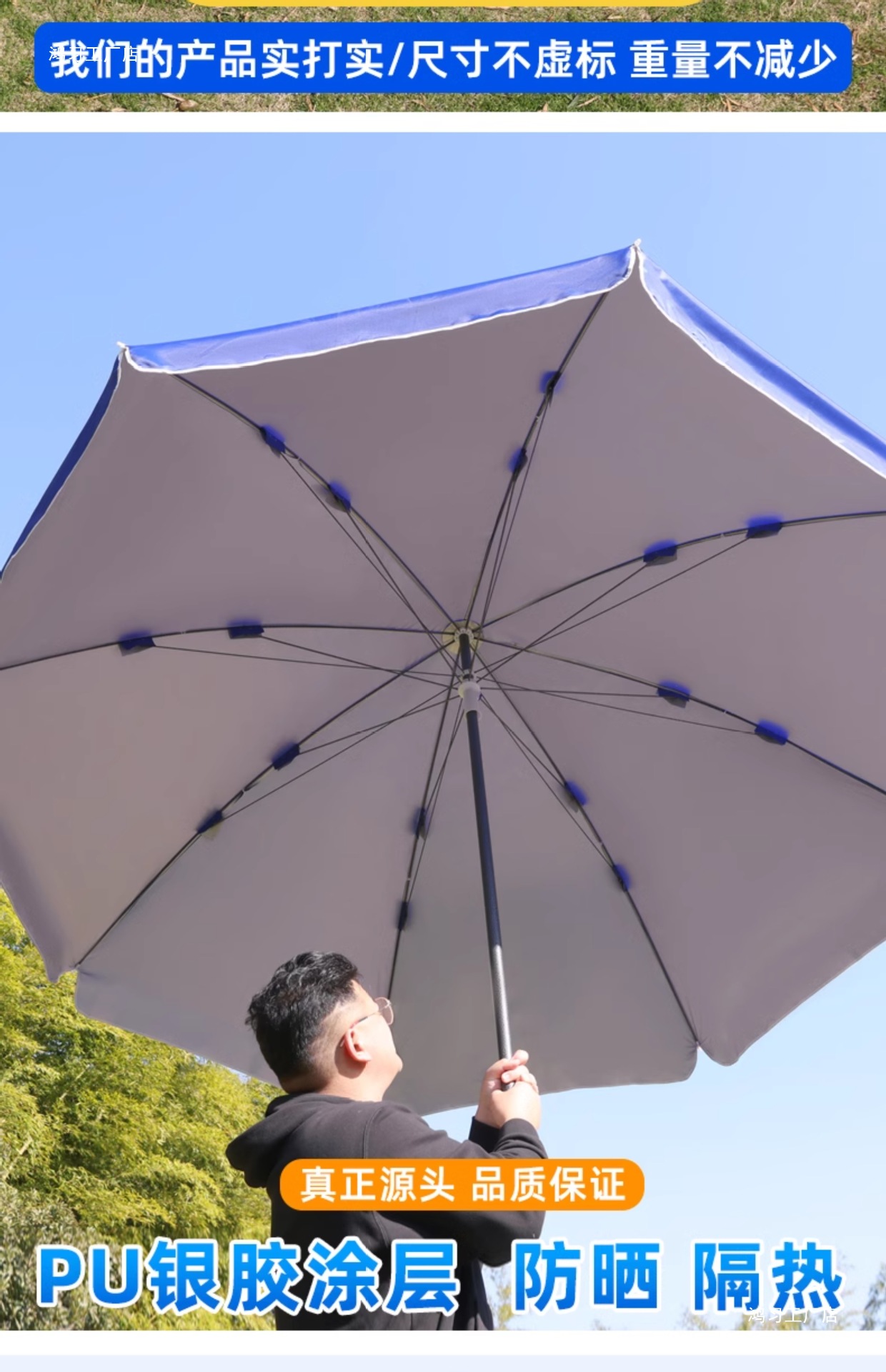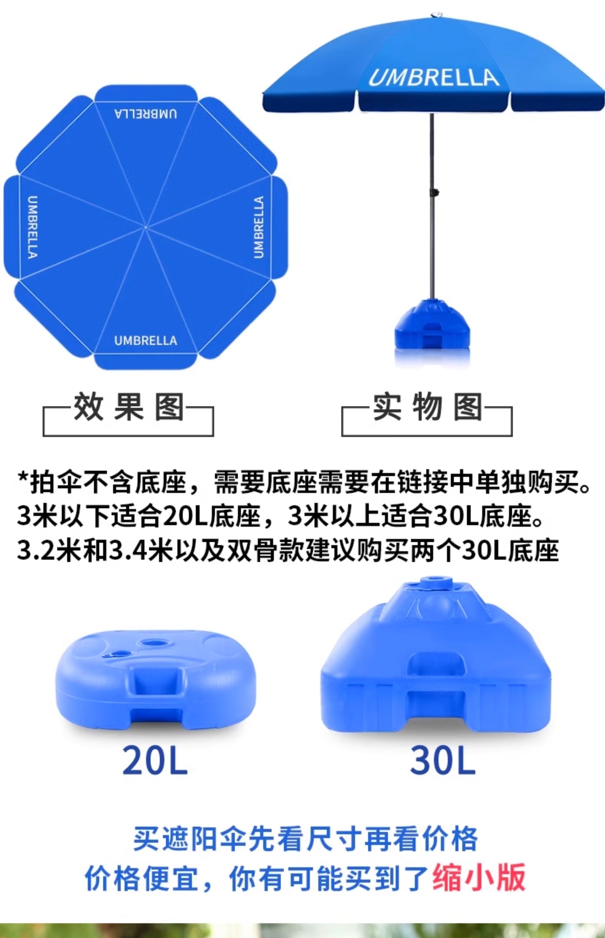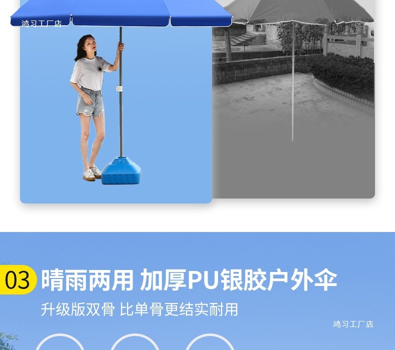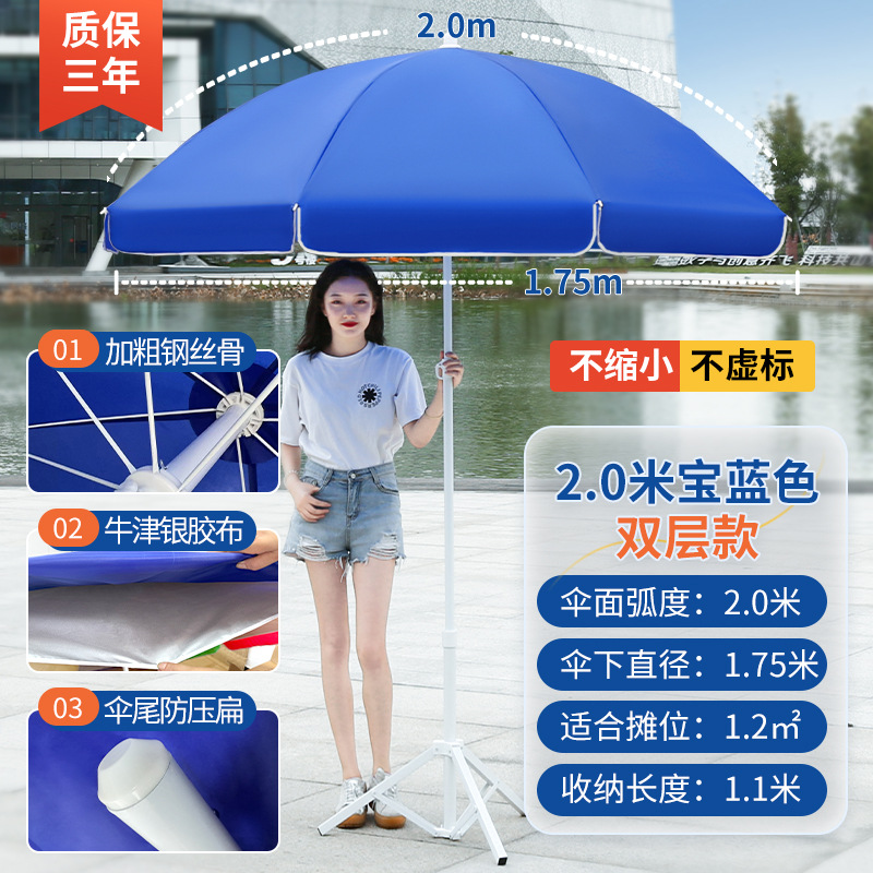 • [이중뼈 16본] 사파이어 블루 2.8m [이중우산] 두꺼운 우산봉 + 베이스