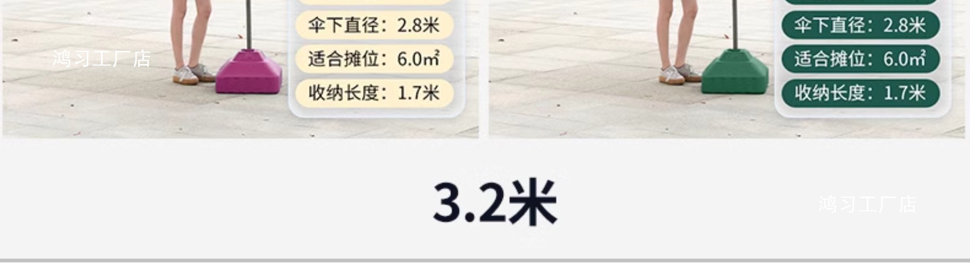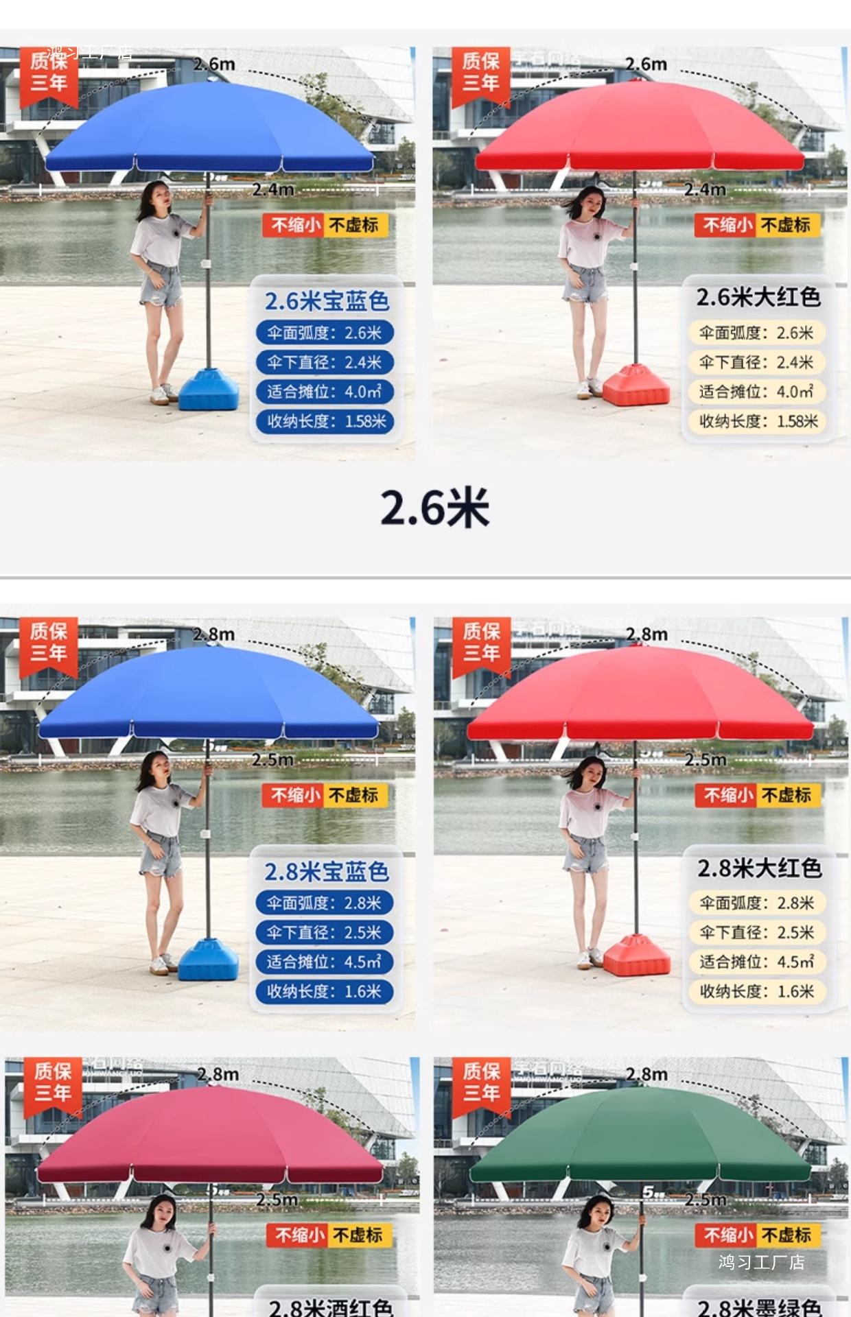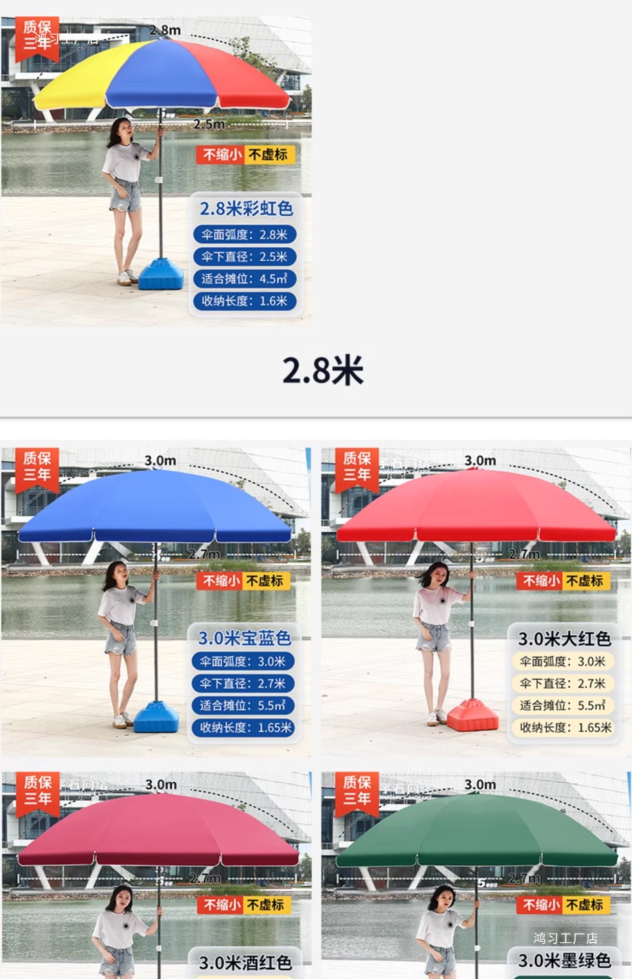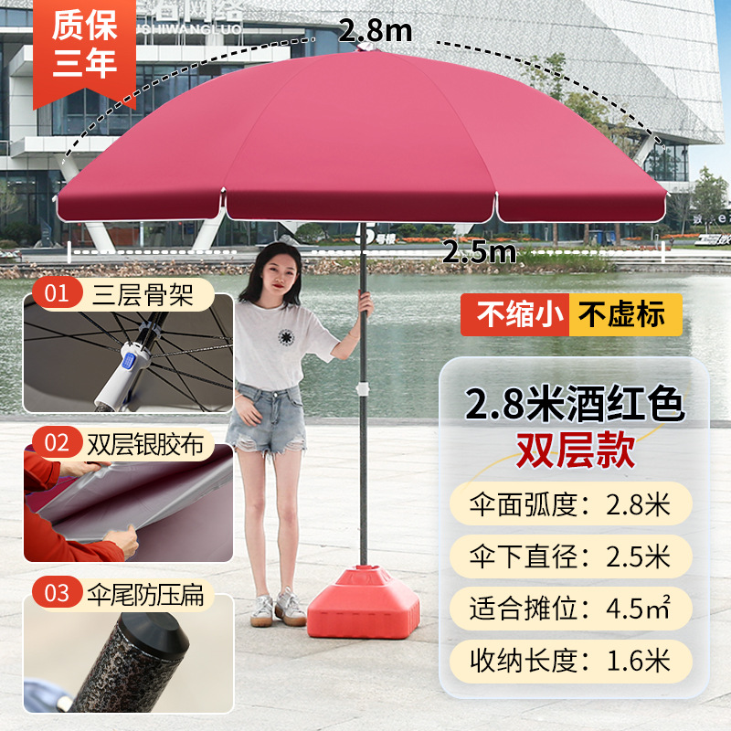 • [이중뼈 16개] 빅레드 2.8m [이중우산] 두꺼운 우산봉 + 베이스