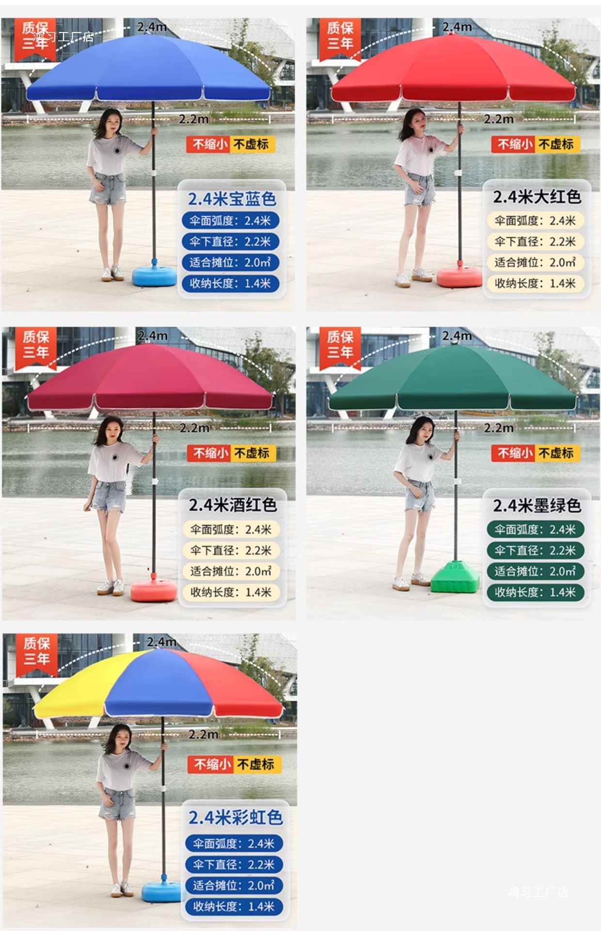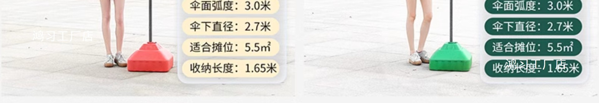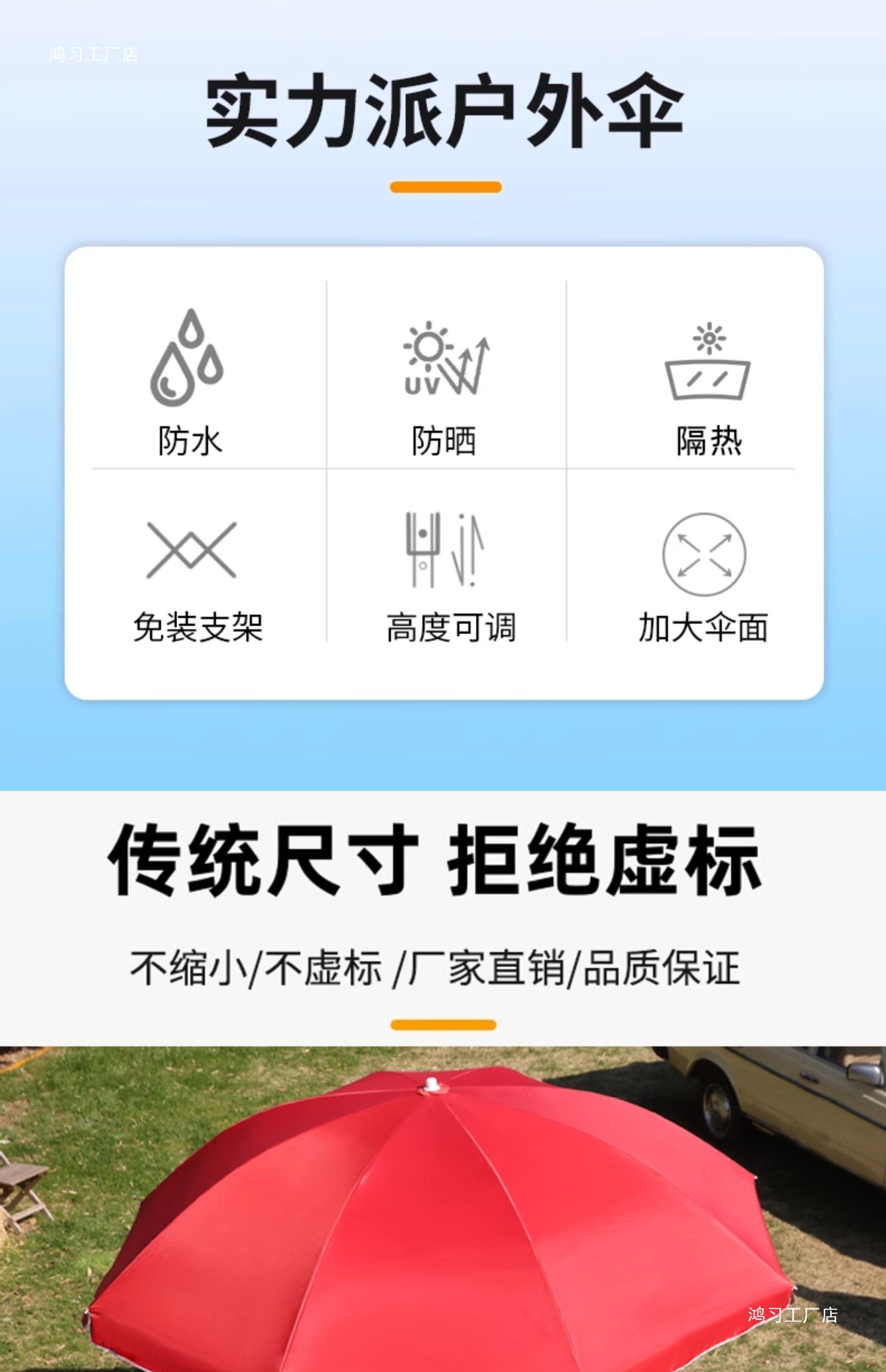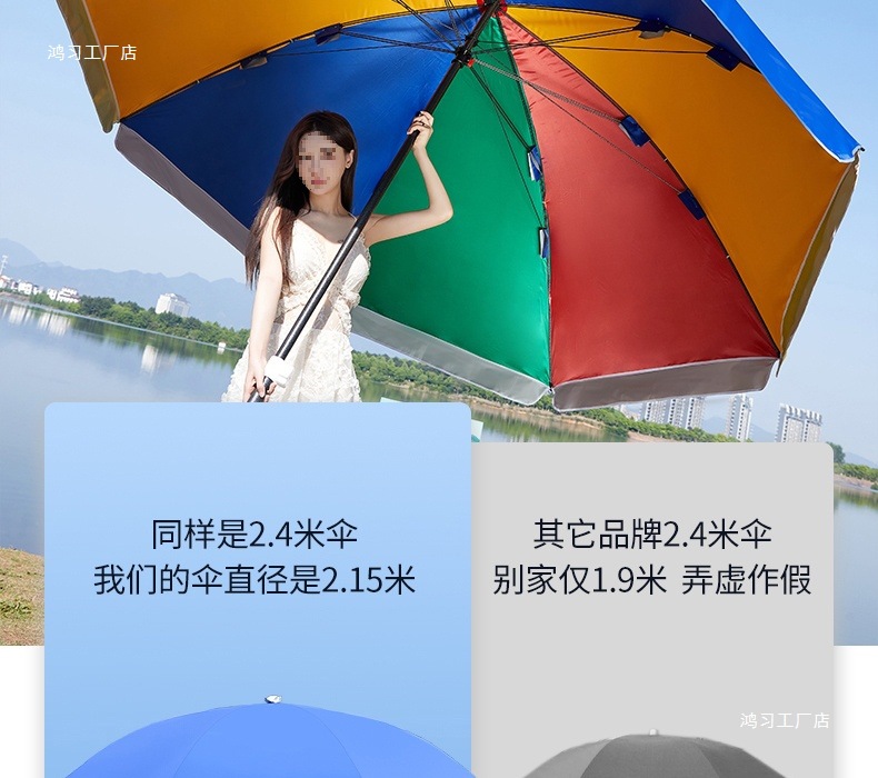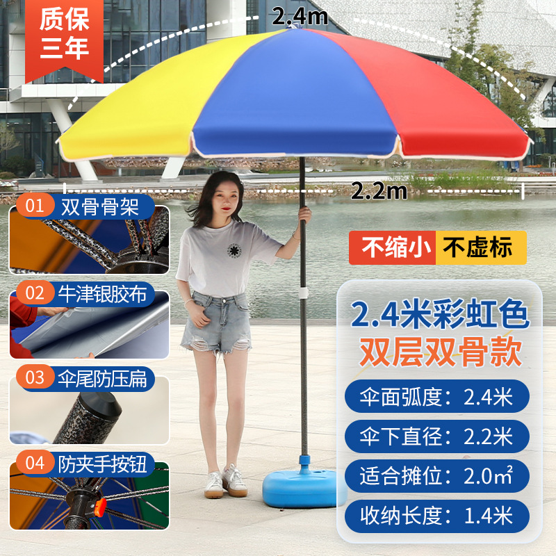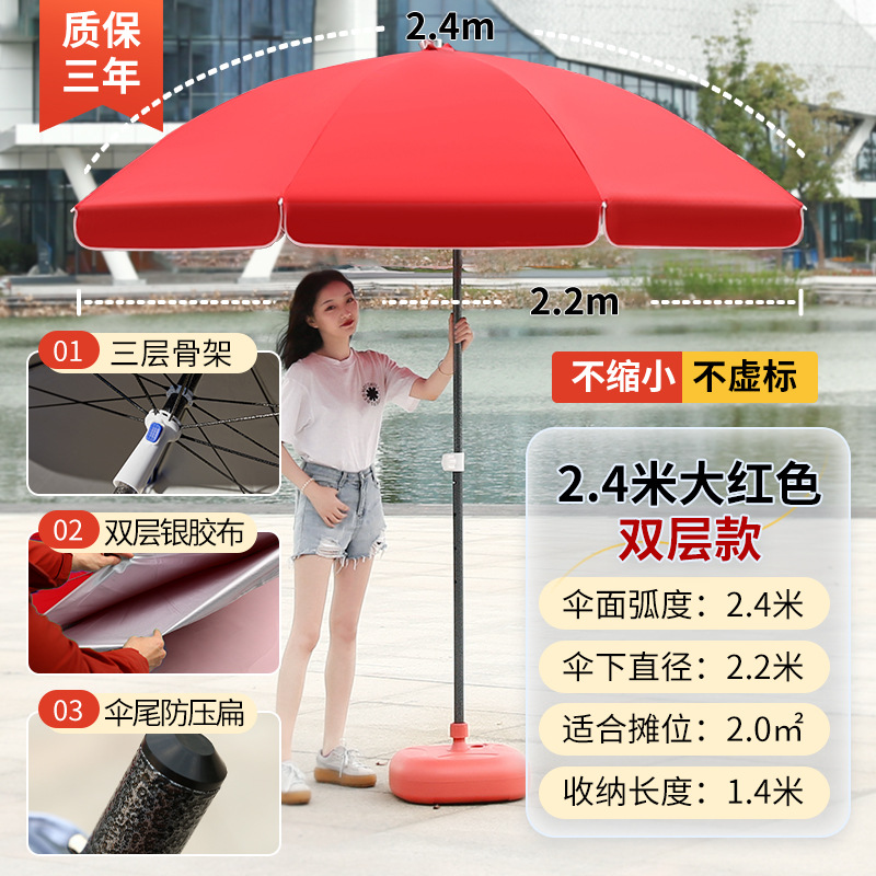 • [이중뼈 16개] 빅레드 2.4m [이중우산] 두꺼운 우산봉 + 베이스