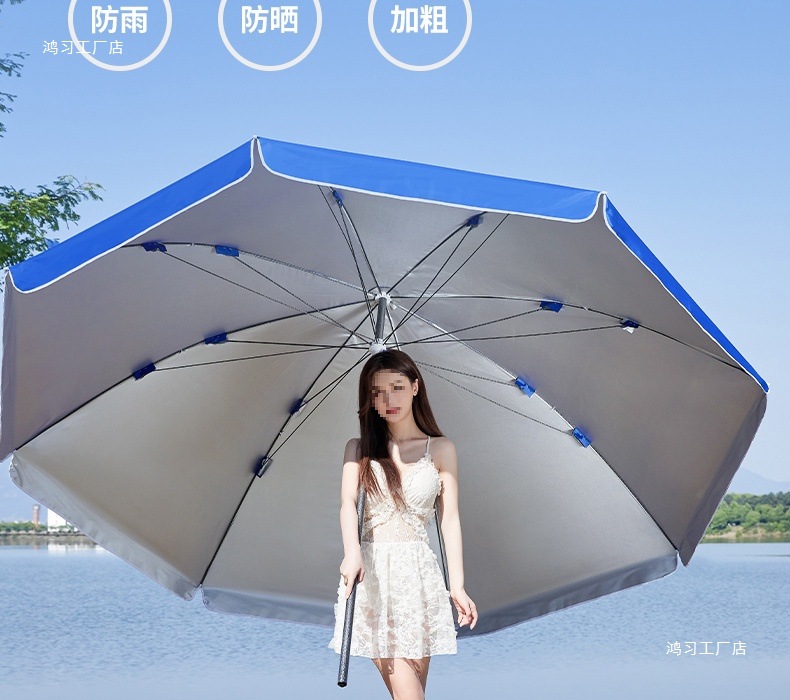 • [이중뼈 16본] 사파이어 블루 2.4m [이중우산] 두꺼운 우산봉 + 베이스