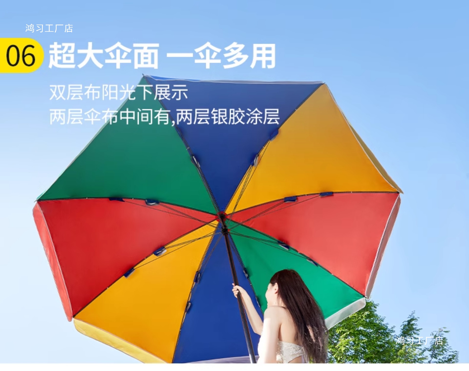 • [이중뼈 16개] 레인보우 2.8m [이중우산] 두꺼워진 우산봉 + 베이스