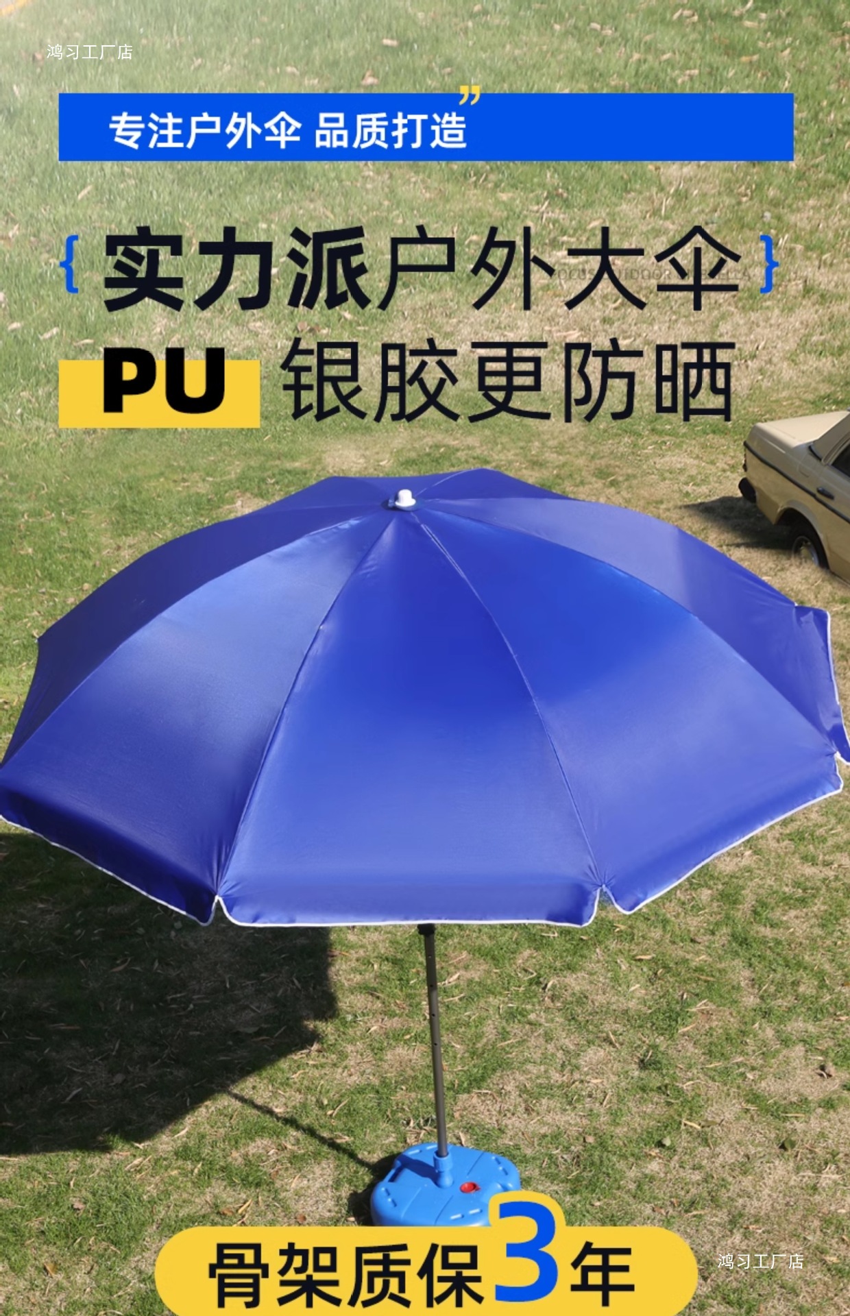 • [이중뼈 16본] 사파이어 블루 3.0m [이중우산] 두꺼운 우산봉 + 베이스