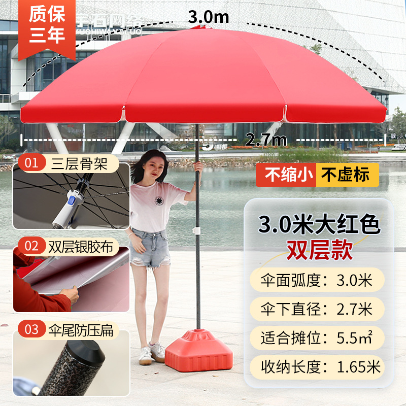 • [이중뼈 16개] 빅레드 3.0m [이중우산] 두꺼운 우산봉 + 베이스