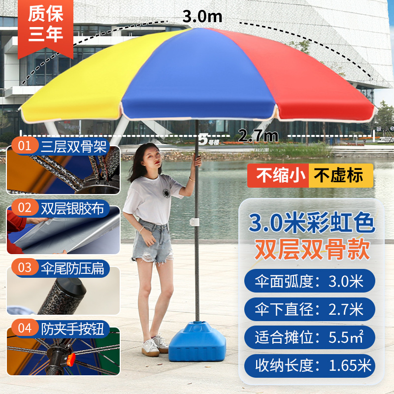 • [이중뼈 16개] 레인보우 3.0m [이중우산] 두꺼워진 우산봉 + 베이스