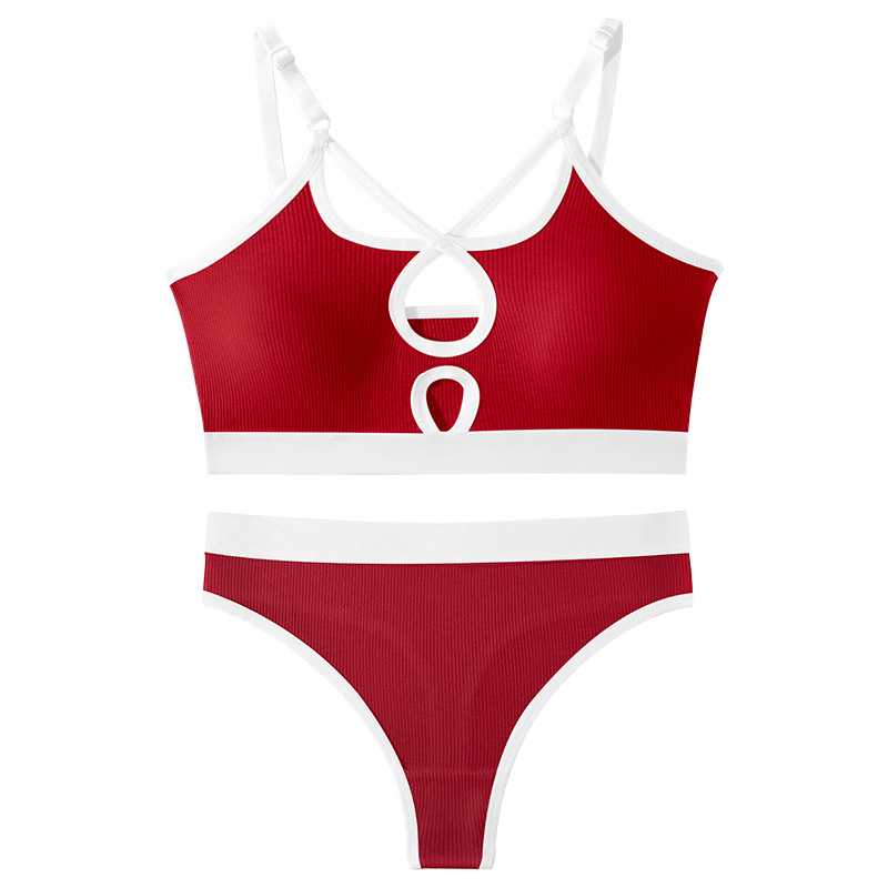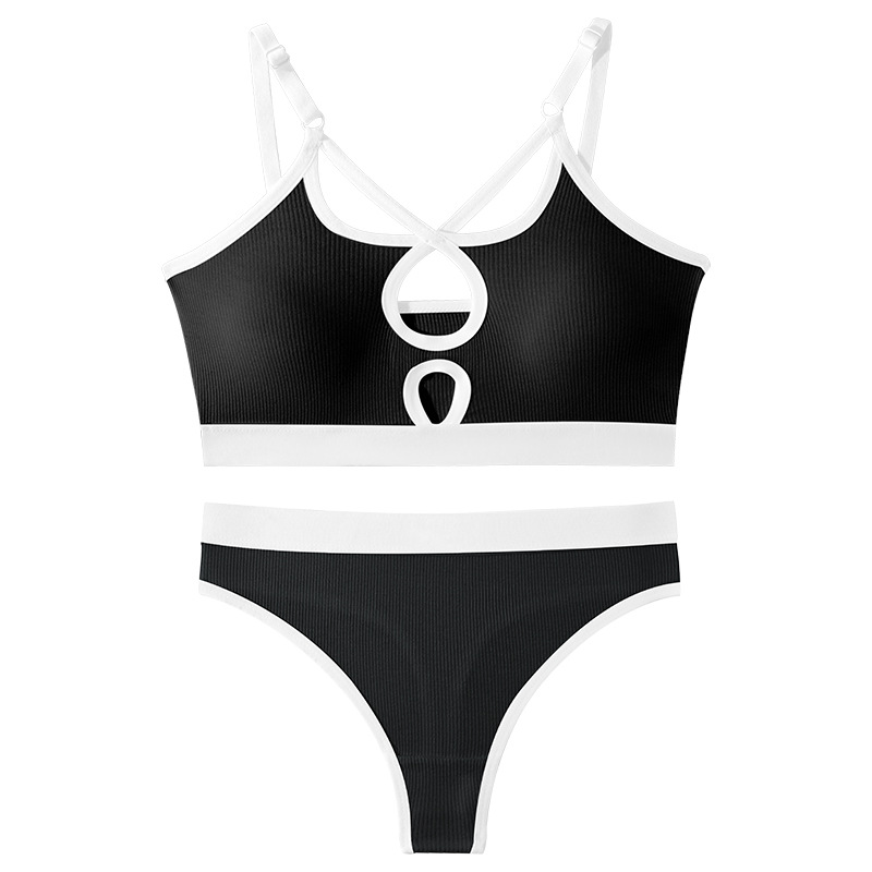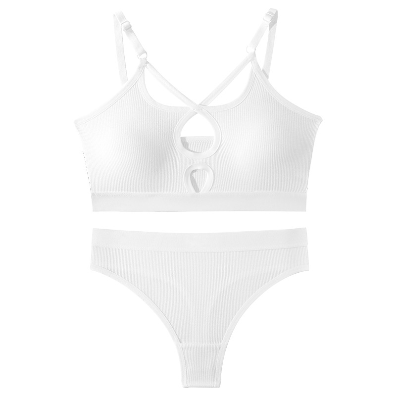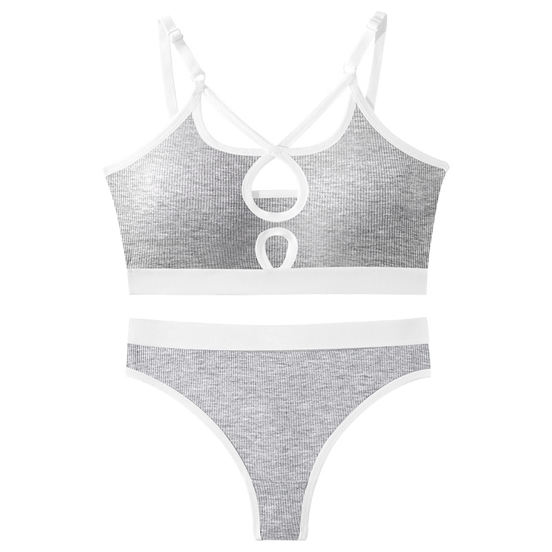 국경 간 대외 무역 면 푸시 업 와이어 프리 프렌치 트라이앵글 컵 스포츠 브라 세트 여성용 서스펜더 브라 도매