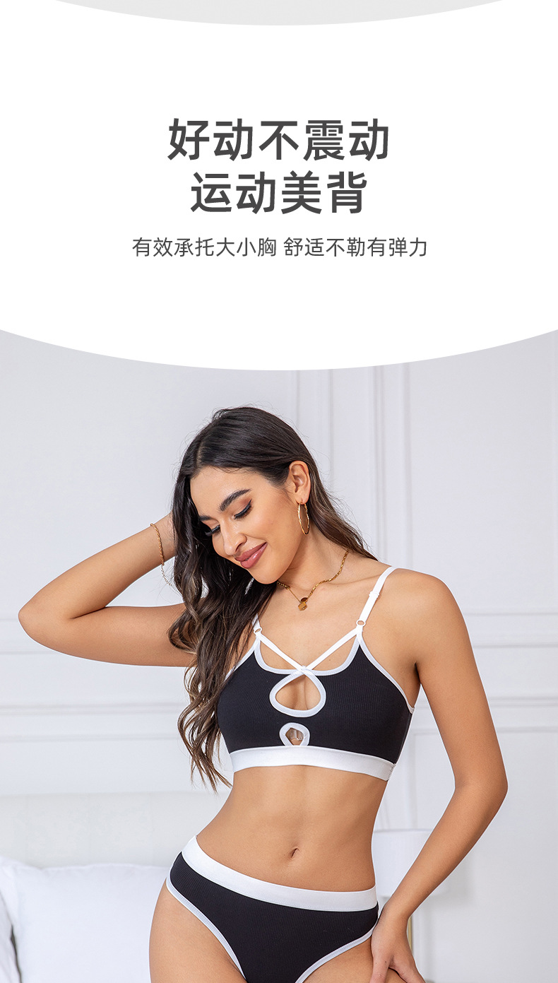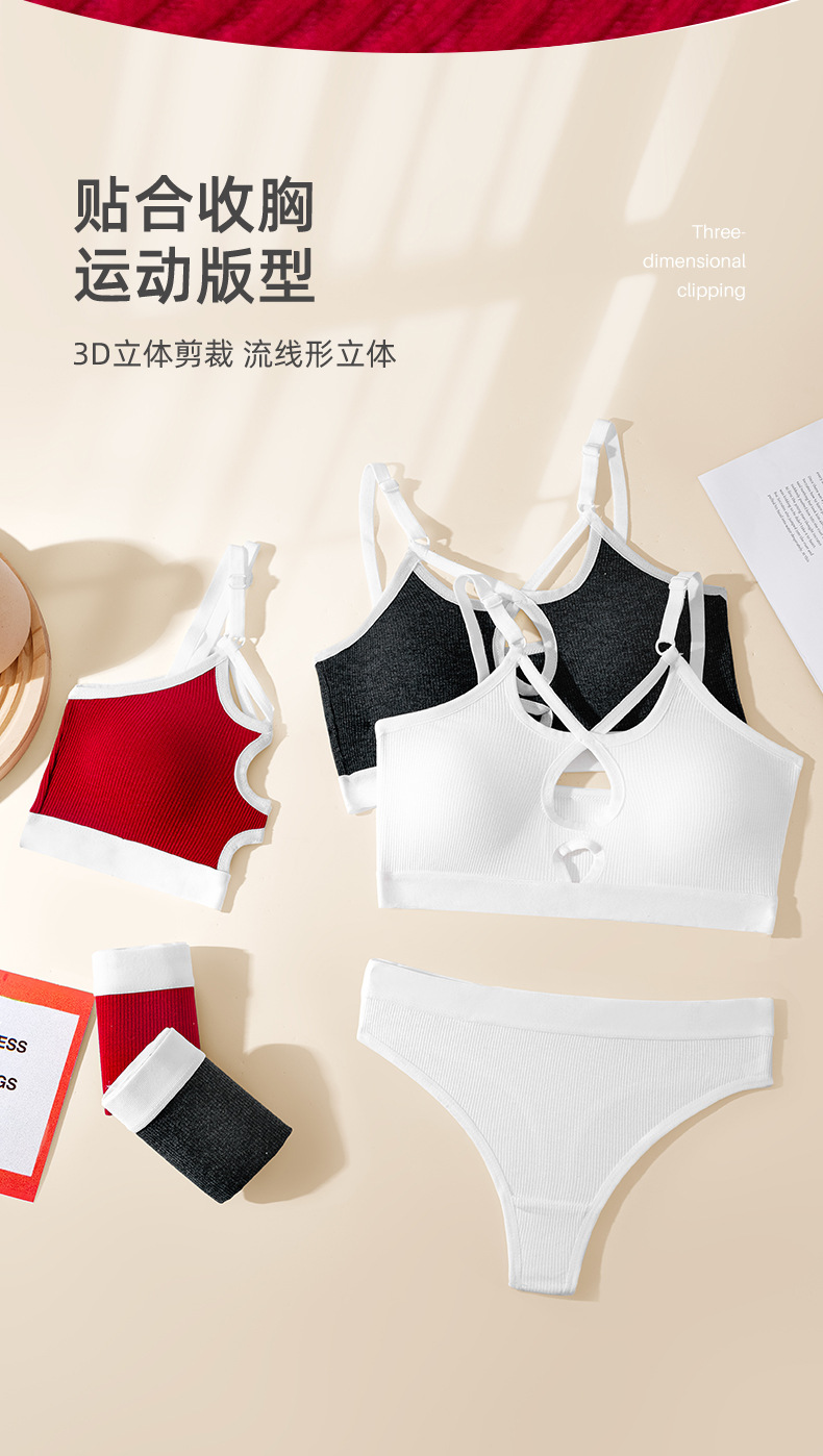 국경 간 대외 무역 면 푸시 업 와이어 프리 프렌치 트라이앵글 컵 스포츠 브라 세트 여성용 서스펜더 브라 도매스토어 가기
