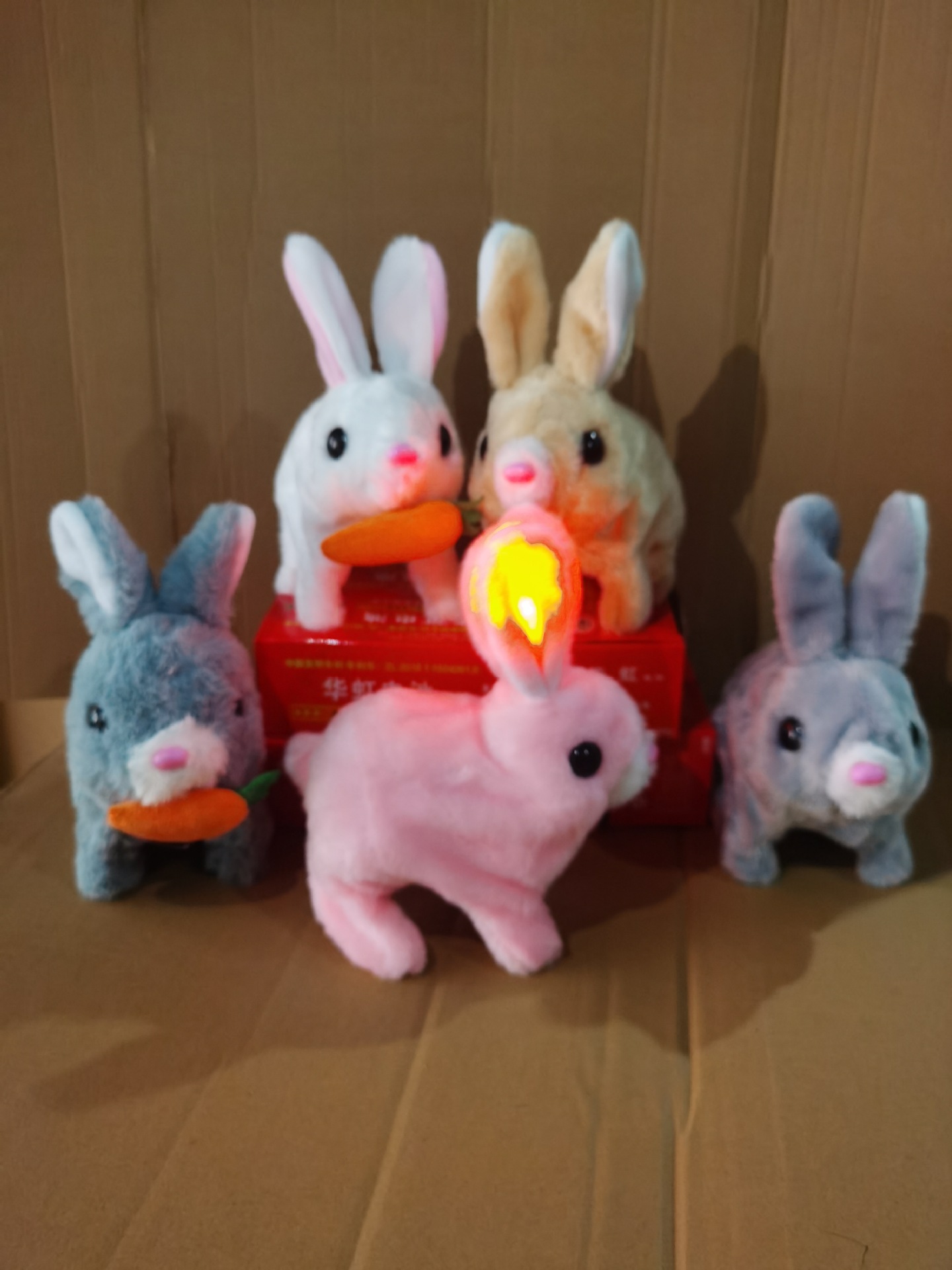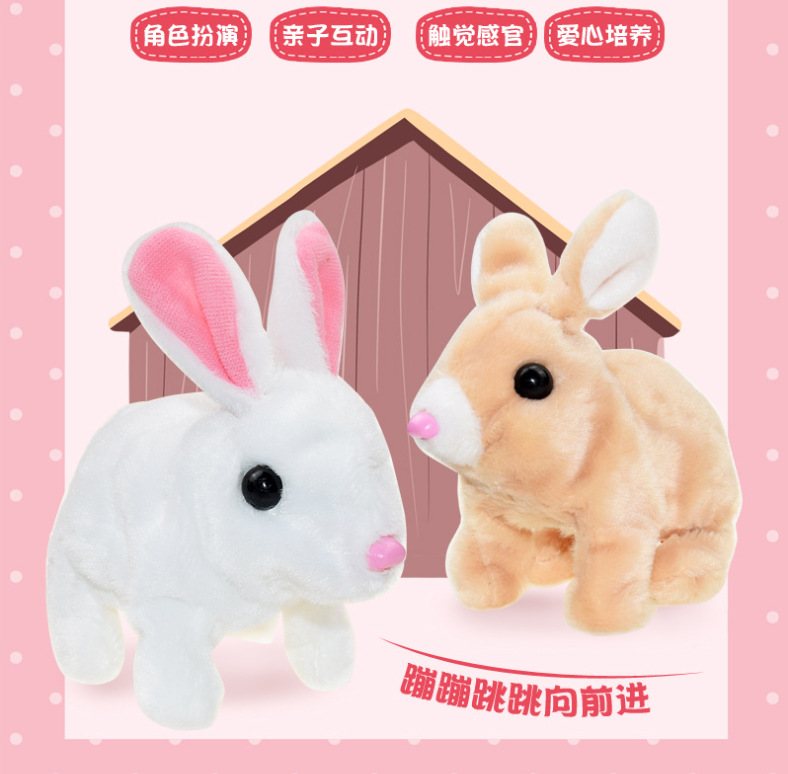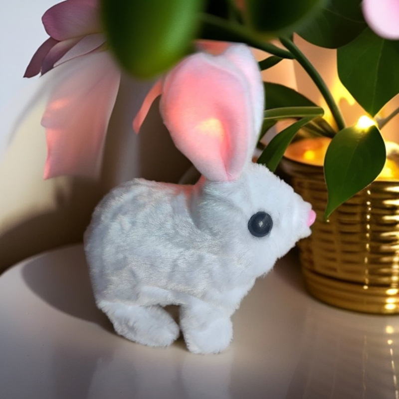 라이트, 달리기, 짖기, 점프 토끼가 있는 전기 흰 토끼 귀, 어린이 놀이 집, 소녀 애완 동물 플러시 장난감 도매스토어 가기