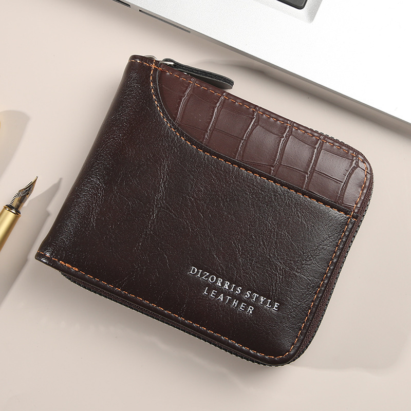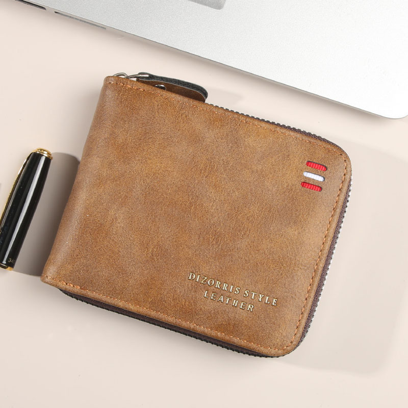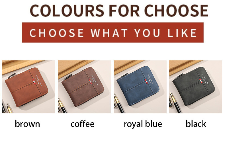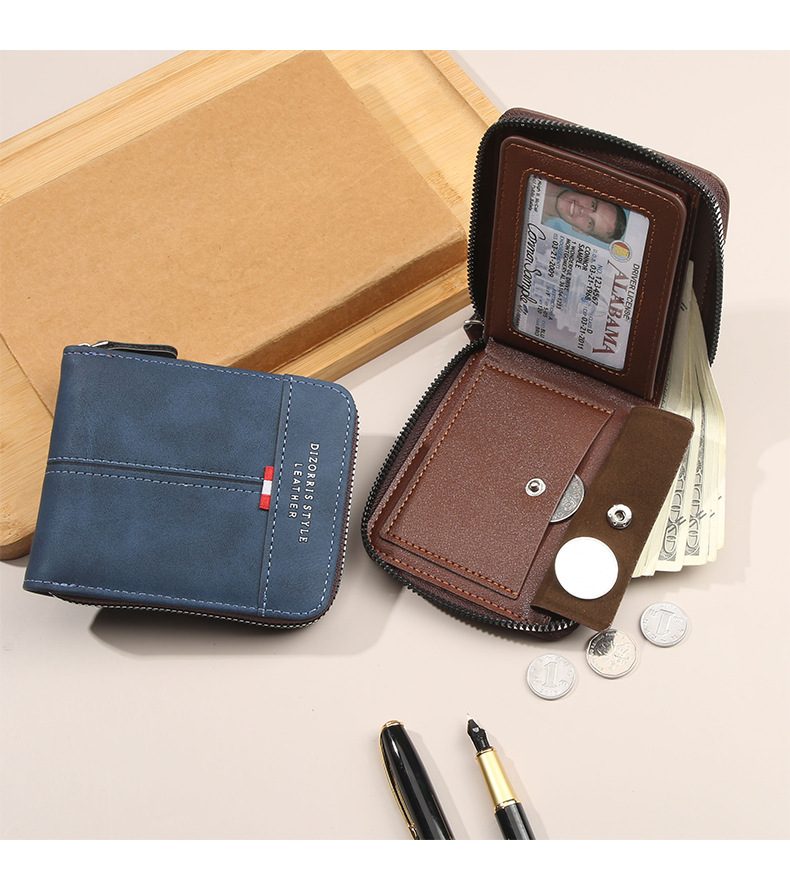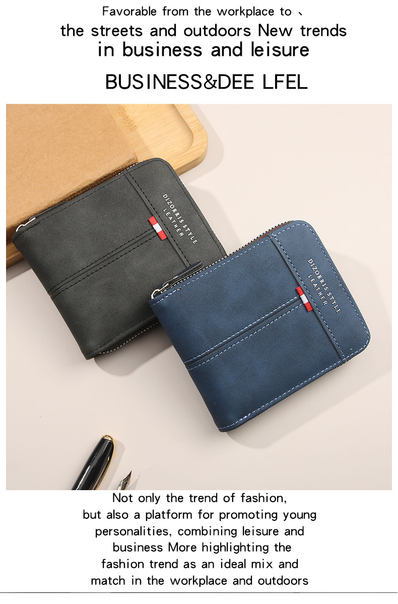 2025 새로운 크로스 보더 남성용 지갑 짧은 가로 지퍼 70% off 동전 지갑 레트로 캐주얼 버클 스퀘어 백스토어 가기
