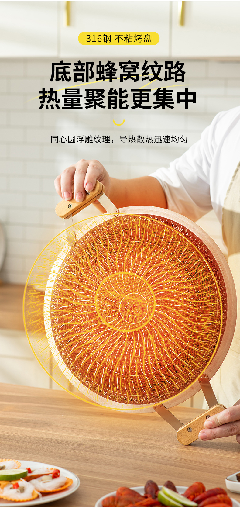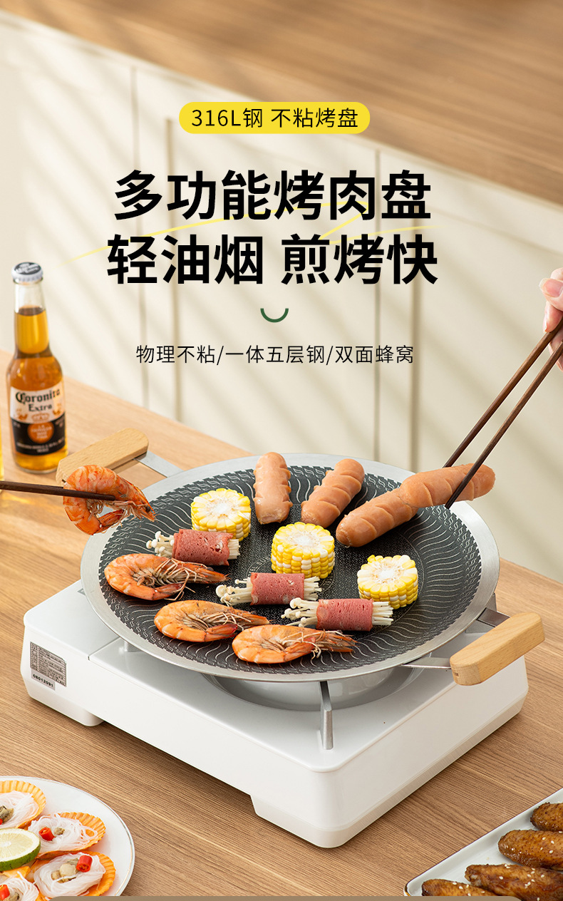 바베큐 플레이트 316 스테인레스 스틸 휴대용 접이식 붙지 않는 바베큐 플레이트 야외 캠핑 라운드 그릴 팬 프라이팬 인덕션 쿠커스토어 가기