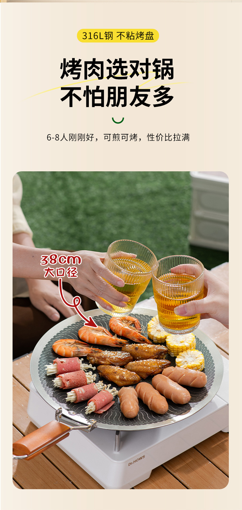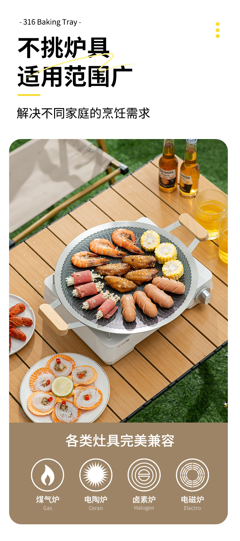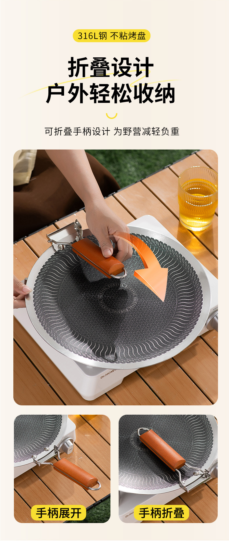 바베큐 플레이트 316 스테인레스 스틸 휴대용 접이식 붙지 않는 바베큐 플레이트 야외 캠핑 라운드 그릴 팬 프라이팬 인덕션 쿠커