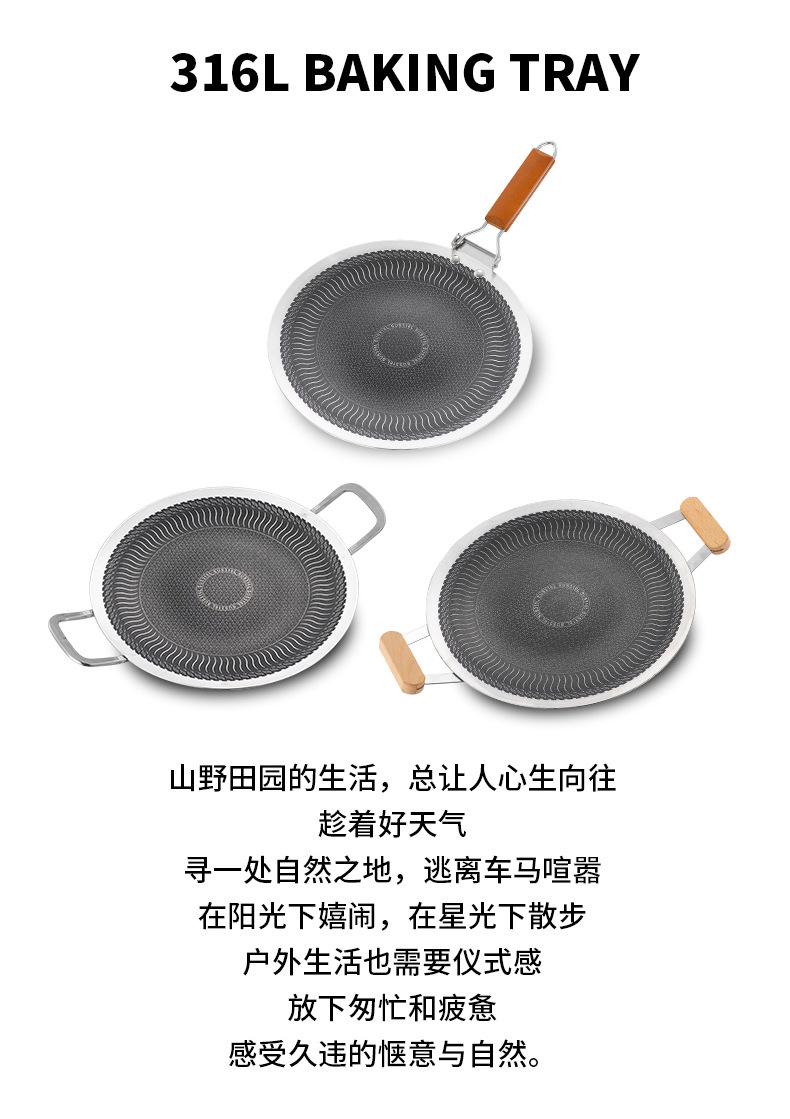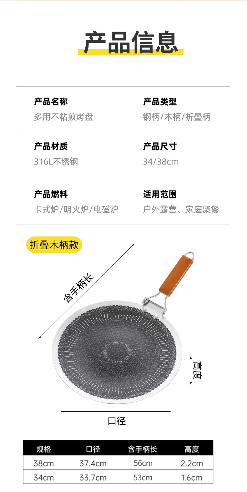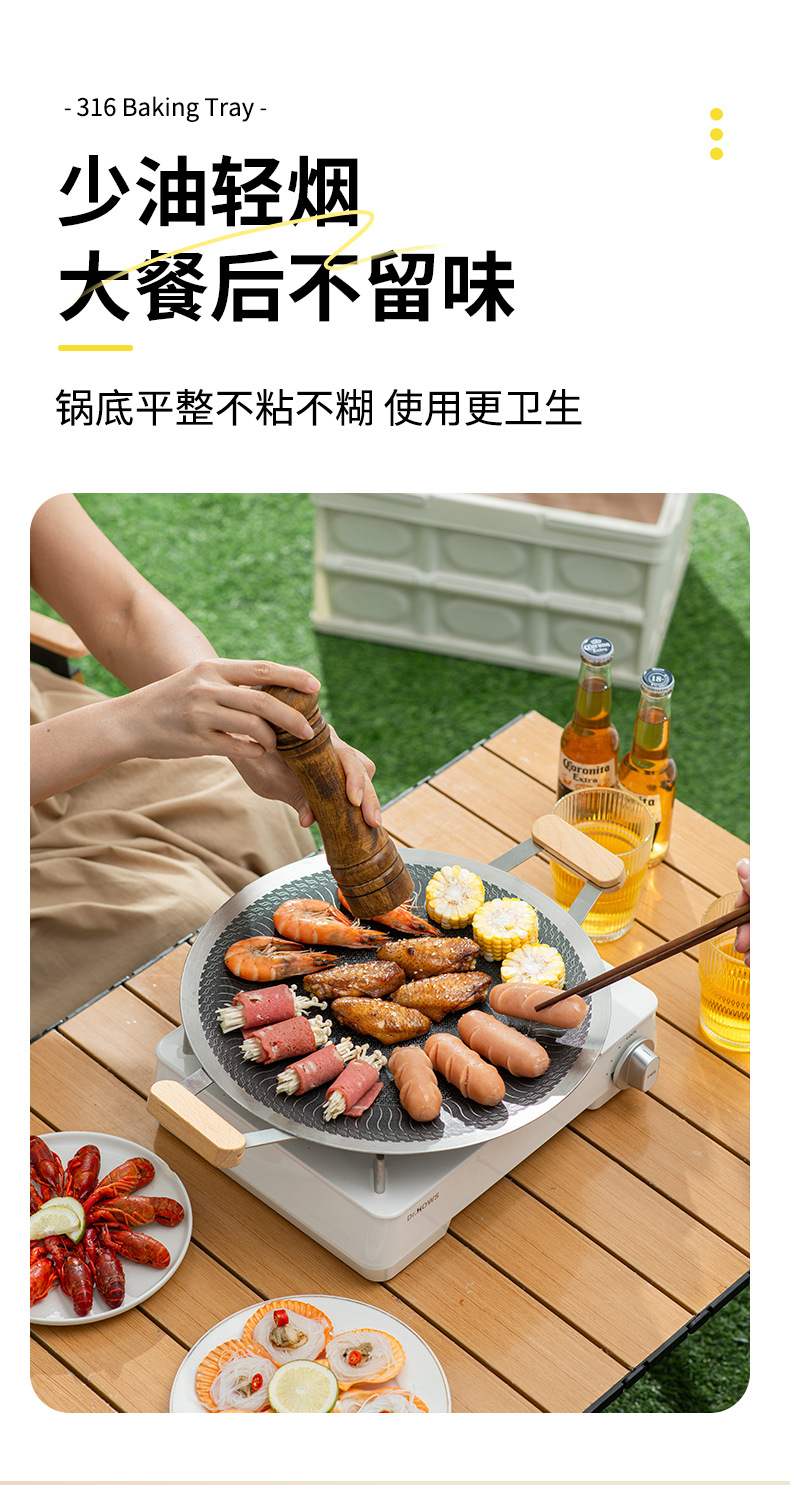 바베큐 플레이트 316 스테인레스 스틸 휴대용 접이식 붙지 않는 바베큐 플레이트 야외 캠핑 라운드 그릴 팬 프라이팬 인덕션 쿠커