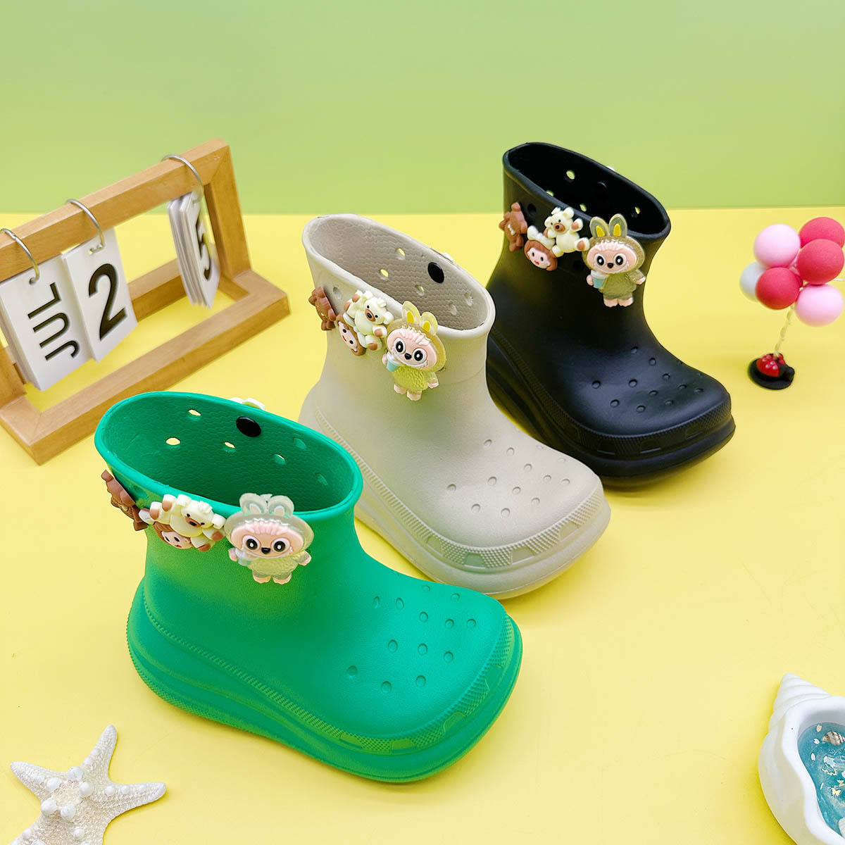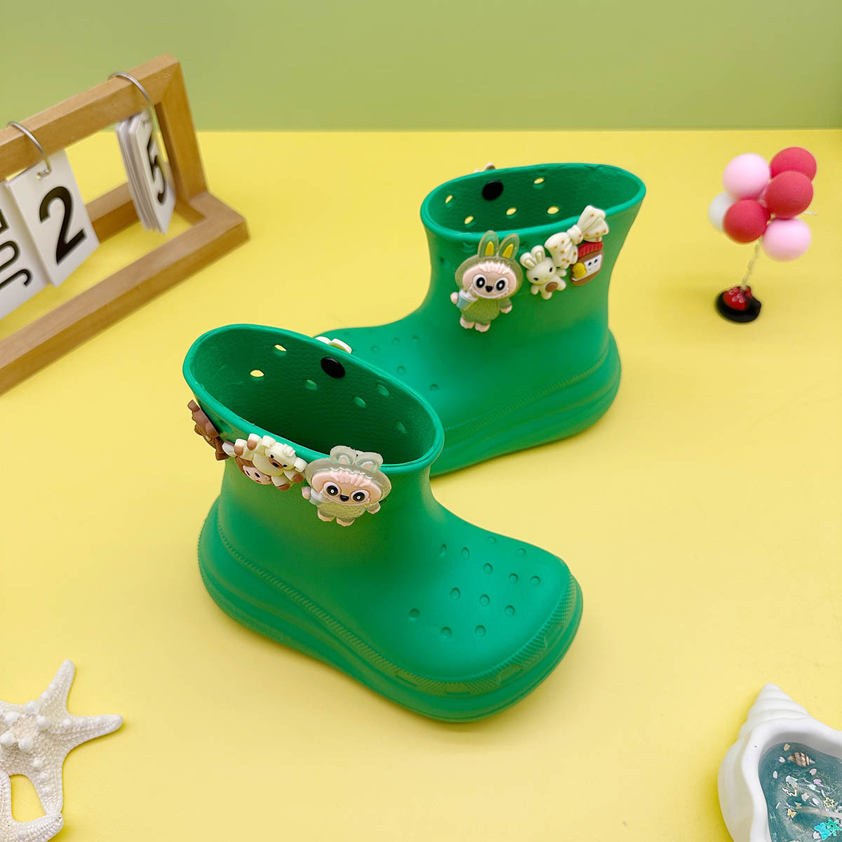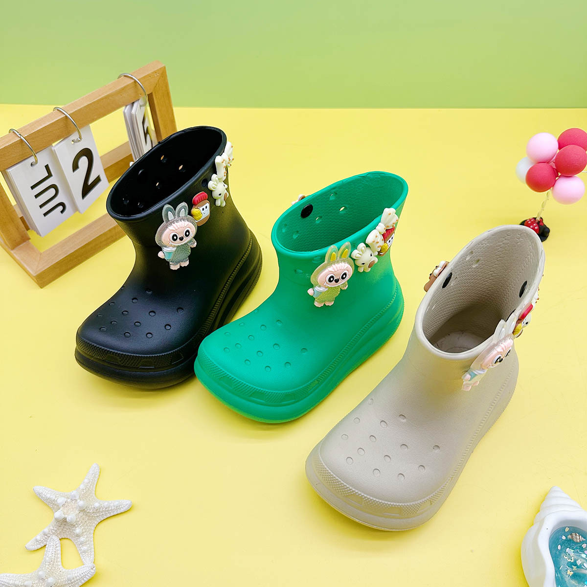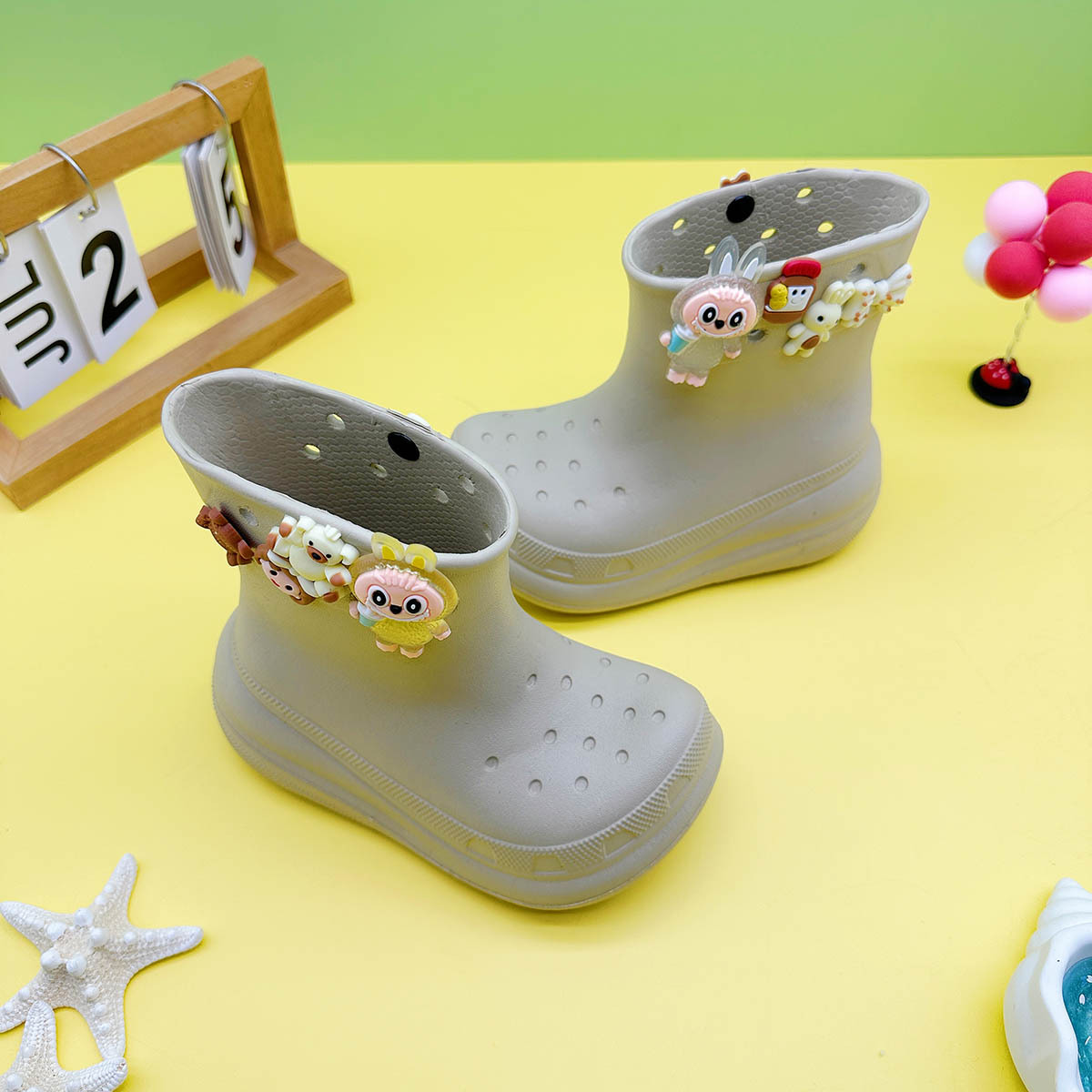레인부츠 만화 곰 래부부 어린이 구멍 레인부츠 유니버설 소녀 워터 슈즈 중간 튜브 소년 중대형 어린이 워터 슈즈스토어 가기