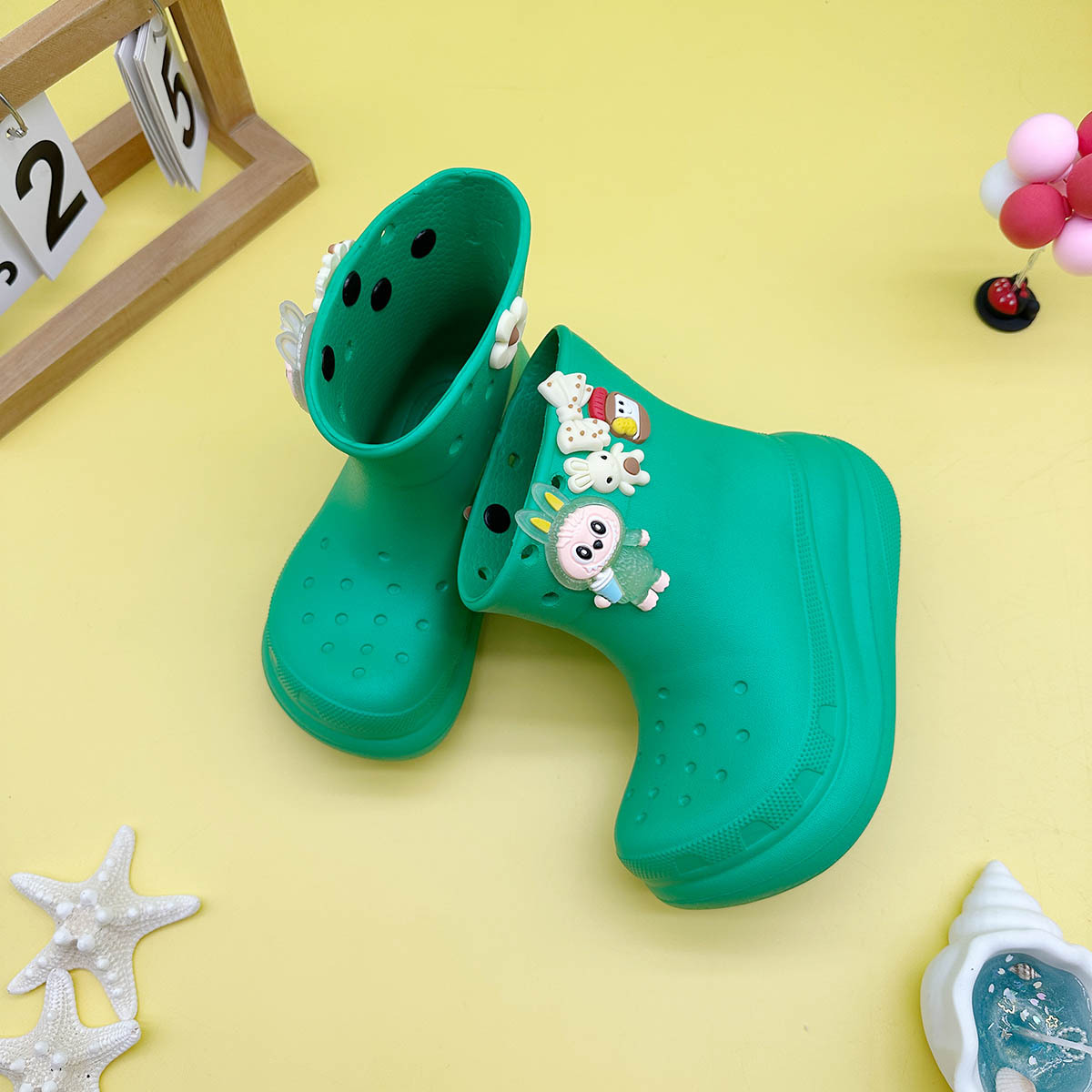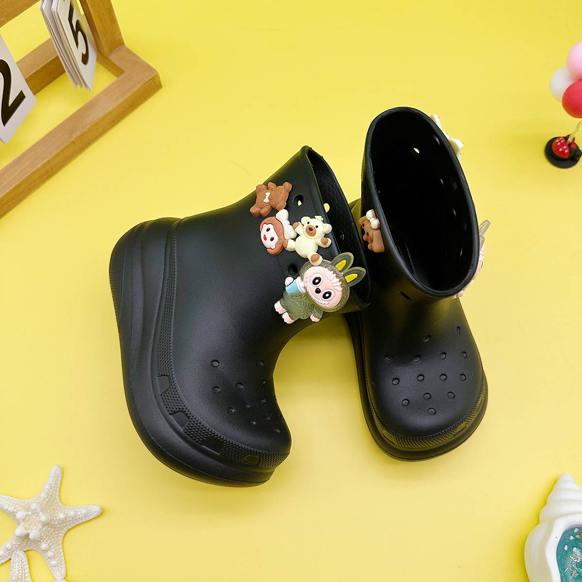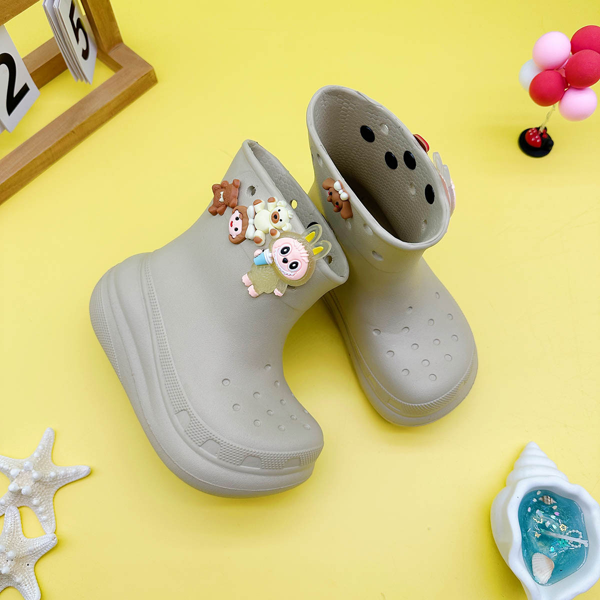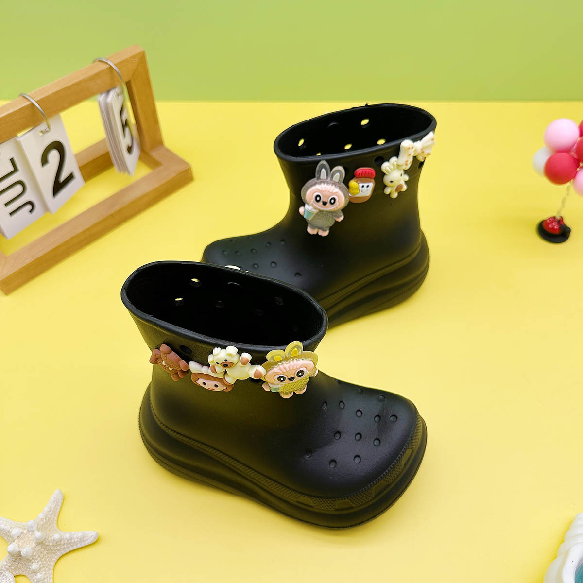 레인부츠 만화 곰 래부부 어린이 구멍 레인부츠 유니버설 소녀 워터 슈즈 중간 튜브 소년 중대형 어린이 워터 슈즈스토어 가기