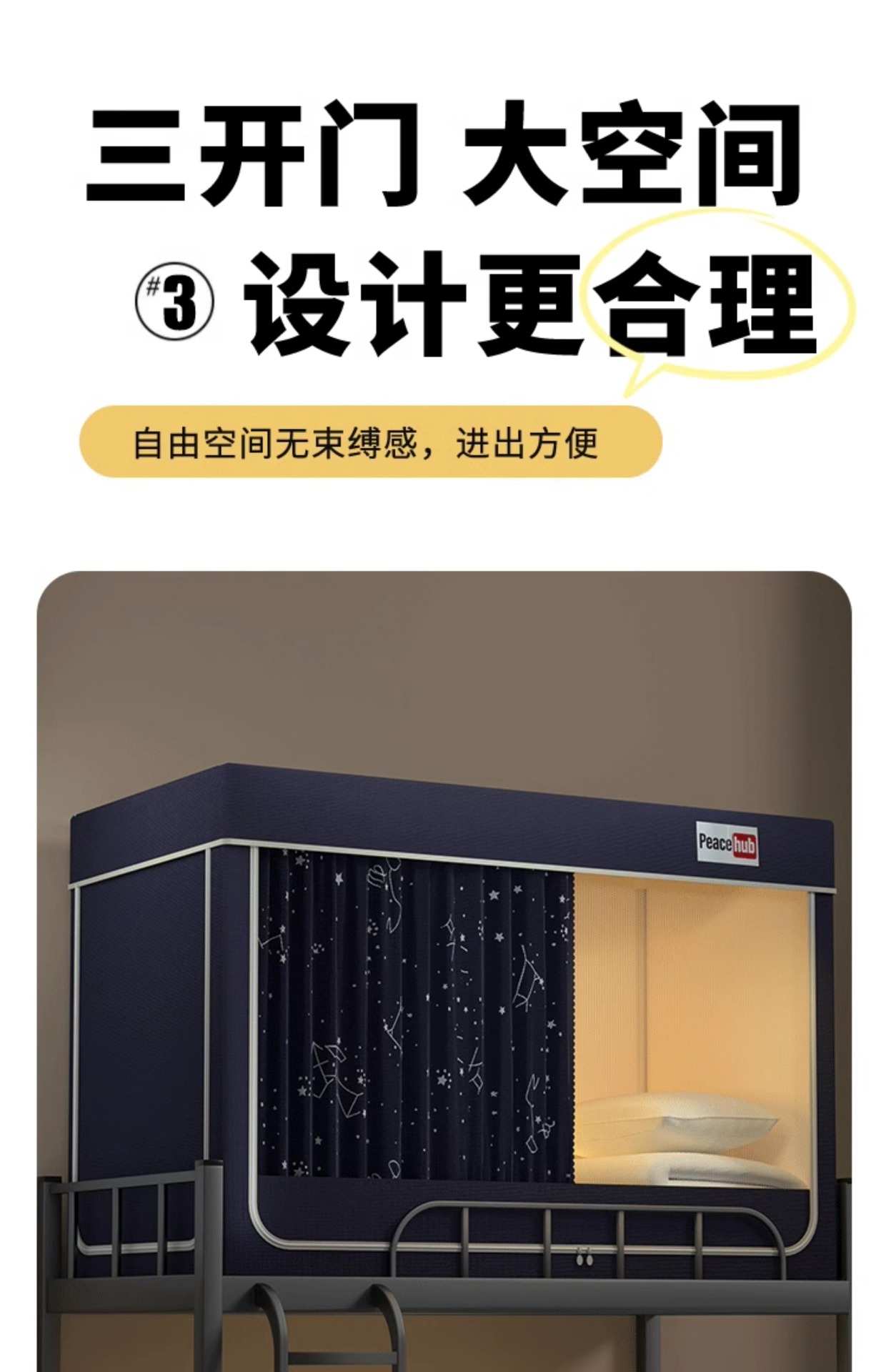 • 탄소강 브래킷 [3도어 상부 침대] 폭 80* 길이 190* 높이 110cm [5면 차광]
