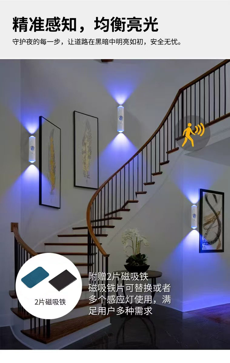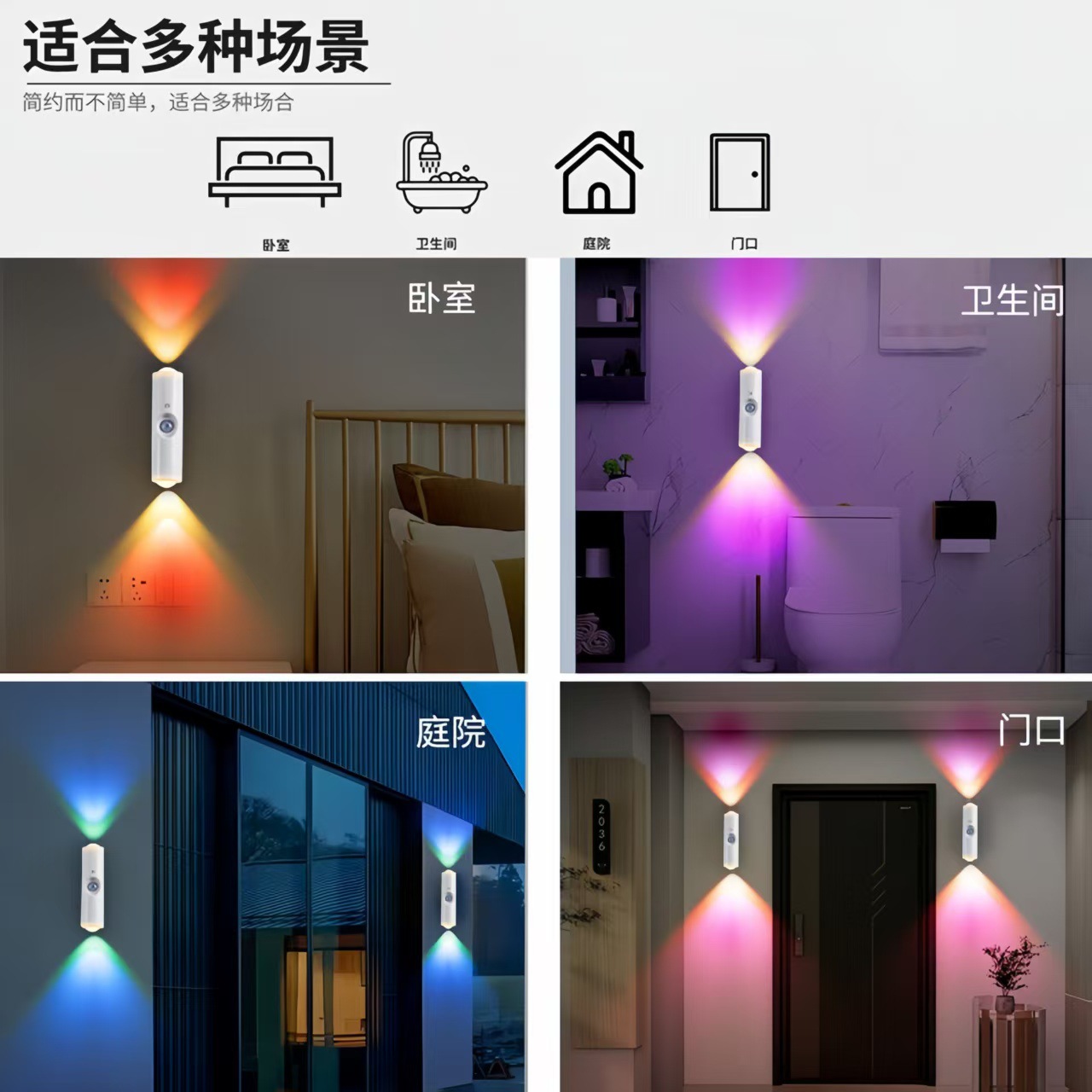 국경을 넘는 신형 스마트 인체 감지등, 다채로운 충전식 감지 벽등, 언덕 야간등, 더블 캣아이 분위기등
