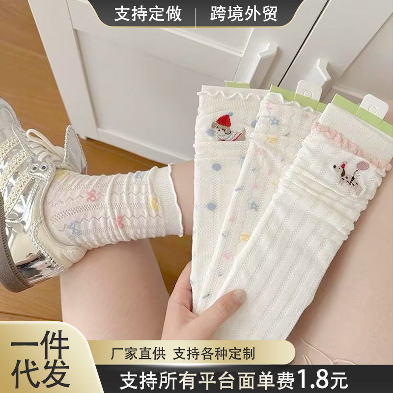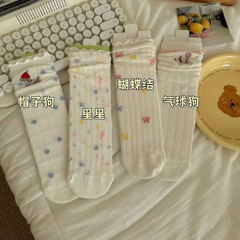 만화 강아지 레이스 메쉬 양말 여성용 종아리 중간 양말 여름 얇은 소녀 달콤하고 귀여운 기능 스태킹 스타킹