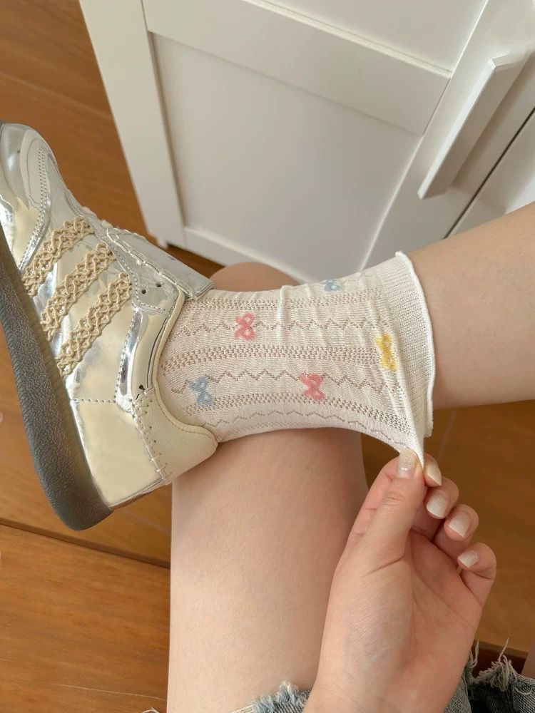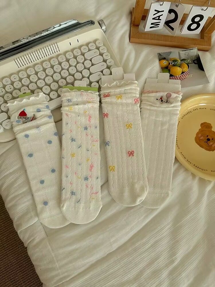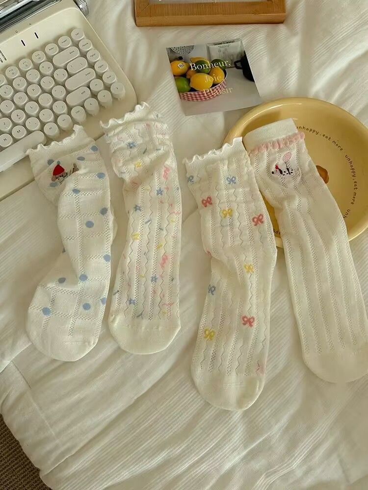 만화 강아지 레이스 메쉬 양말 여성용 종아리 중간 양말 여름 얇은 소녀 달콤하고 귀여운 기능 스태킹 스타킹스토어 가기