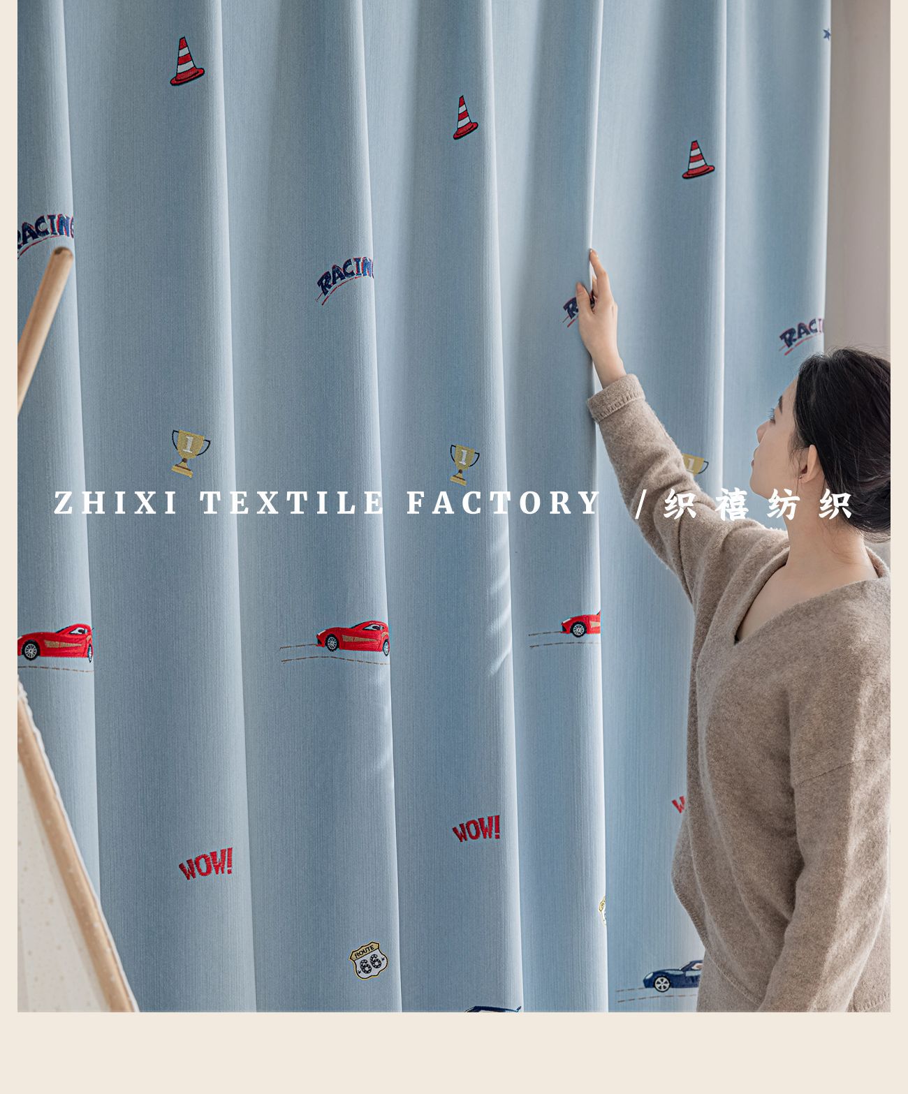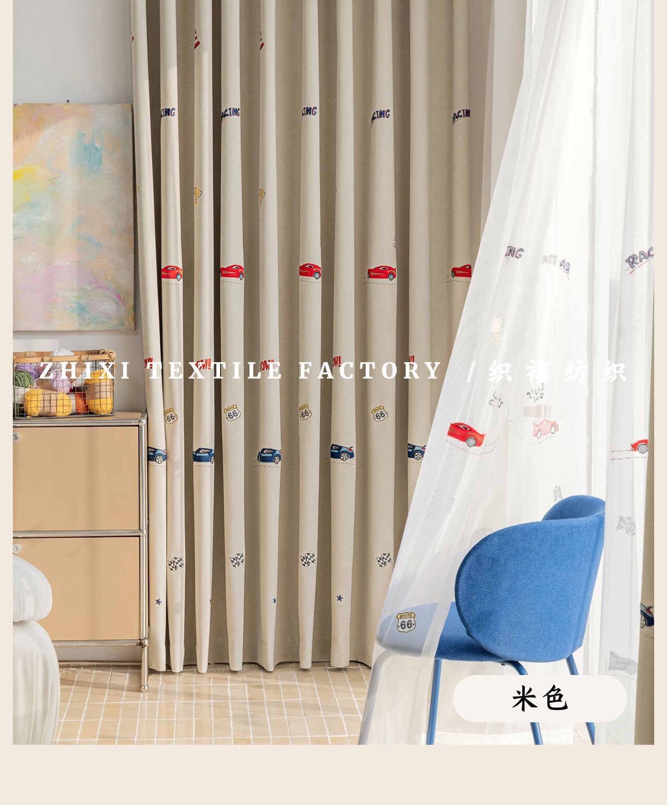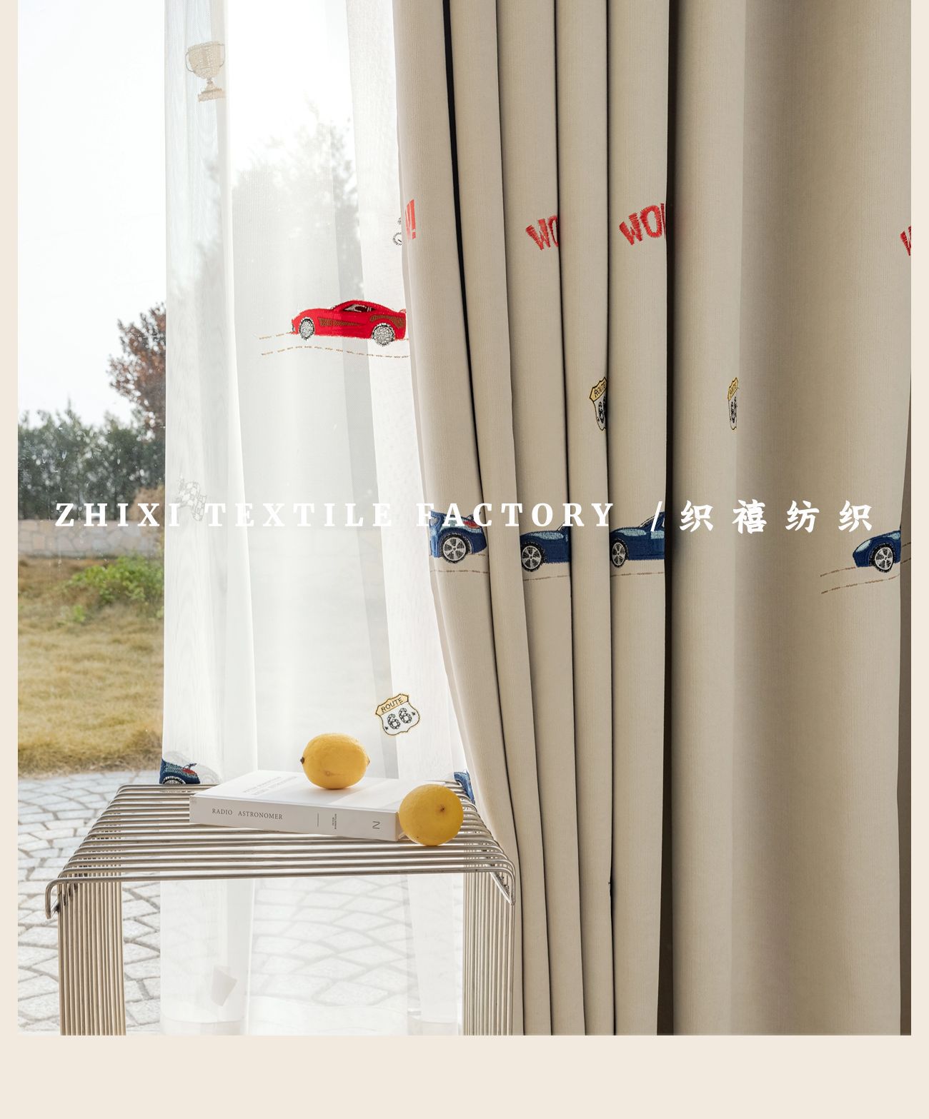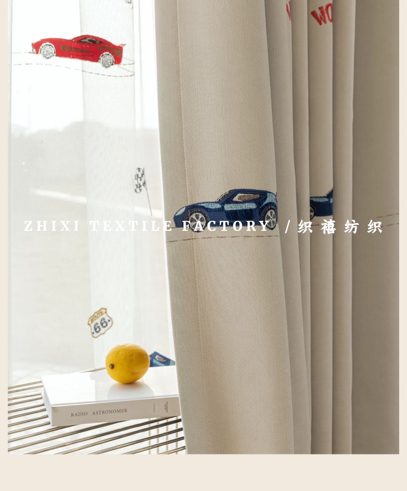 새로운 어린이 같은 자동차 자수 커튼 창 스크린 만화 스타일 어린이 방 침실 셔닐 빛 차단 커튼 거즈 커튼스토어 가기