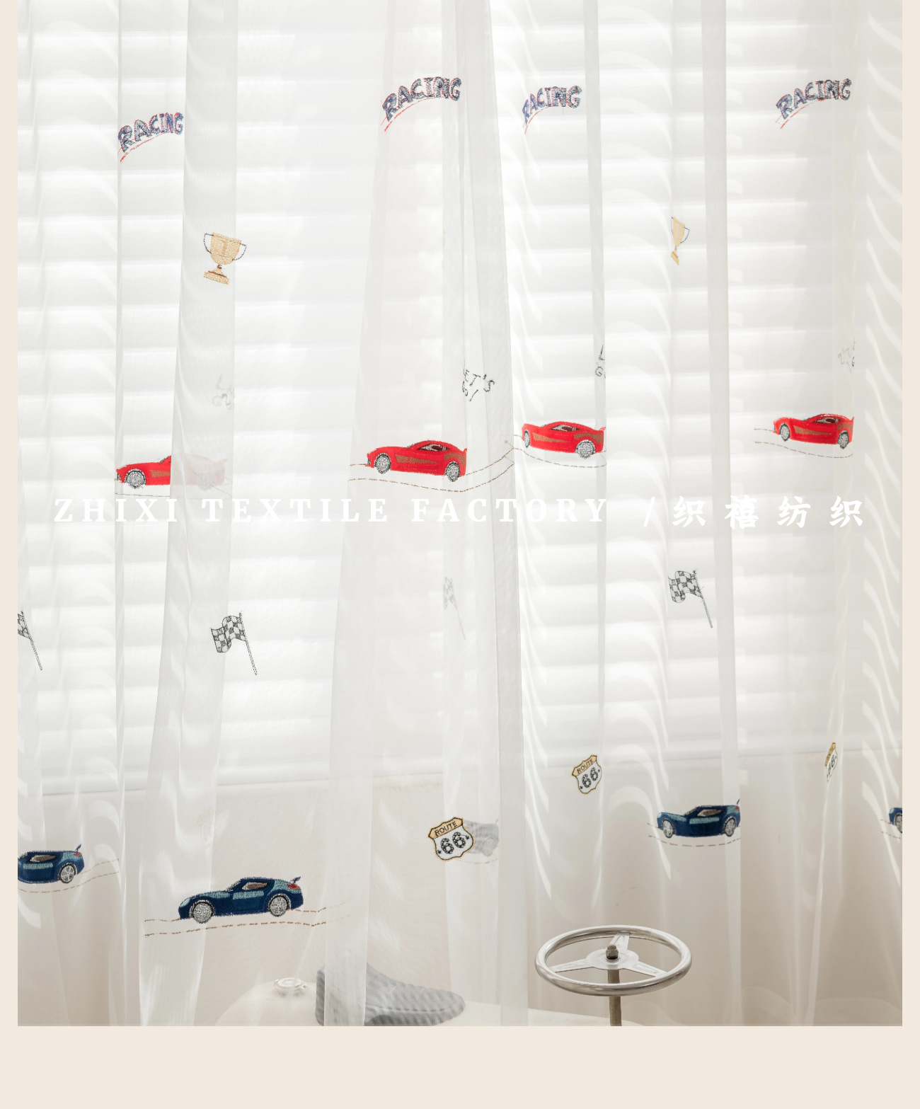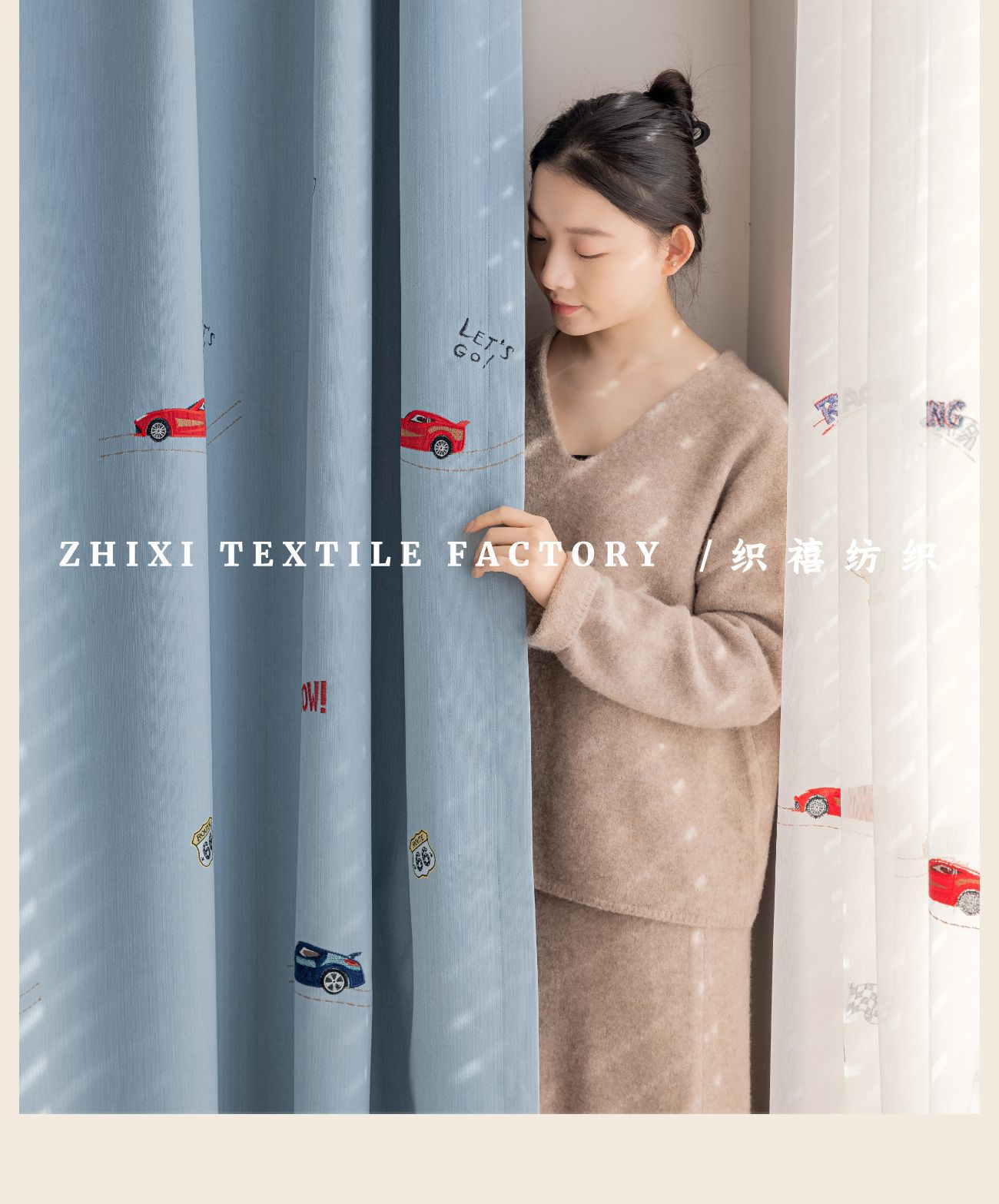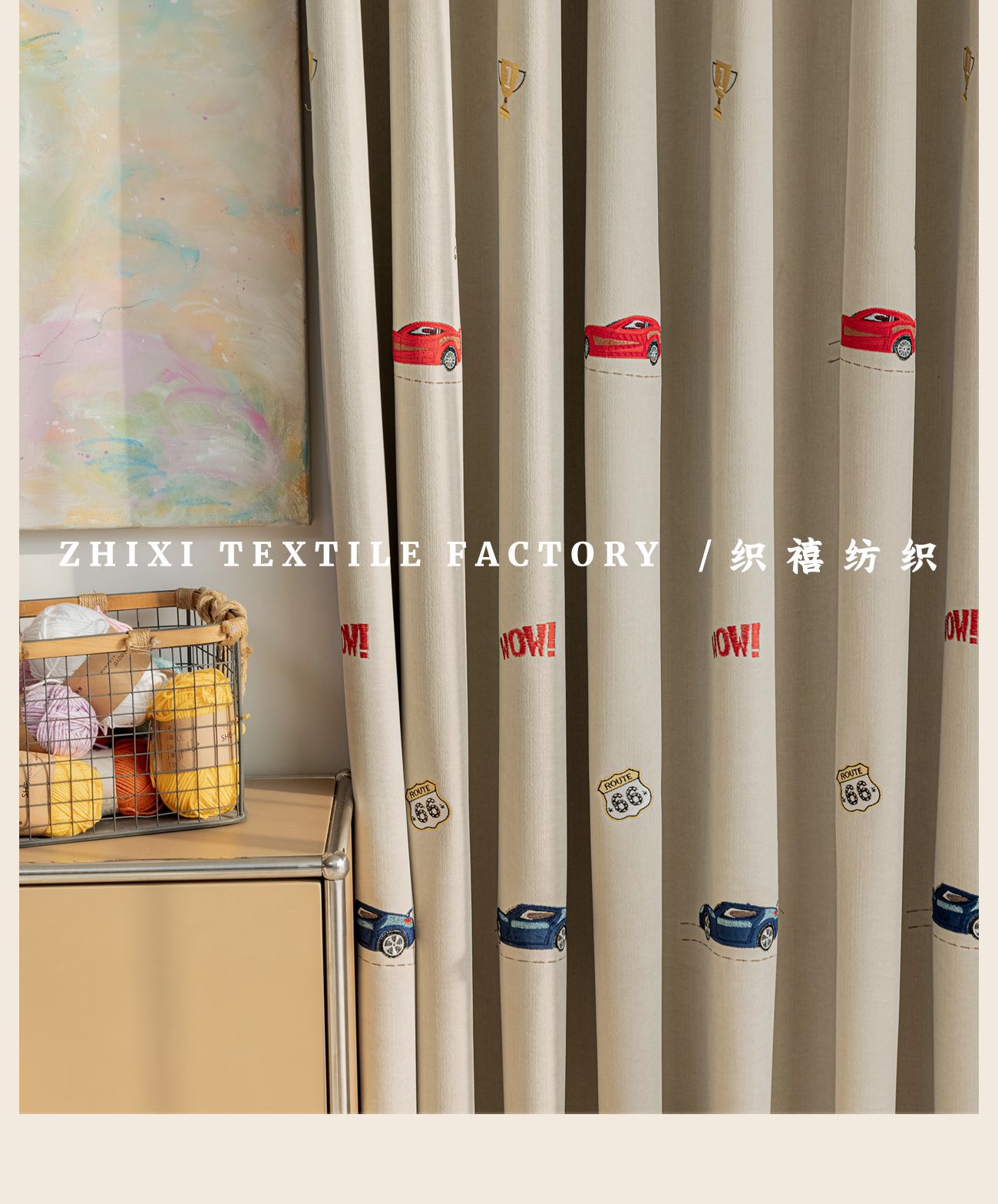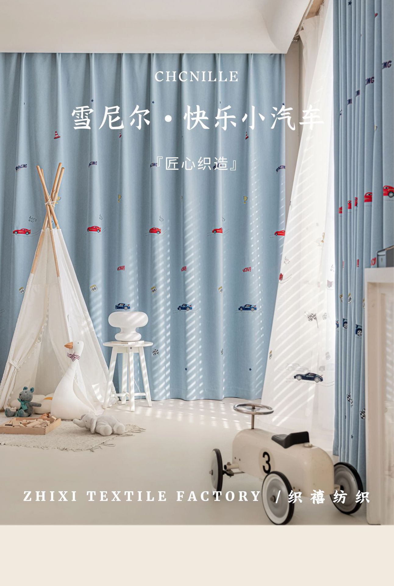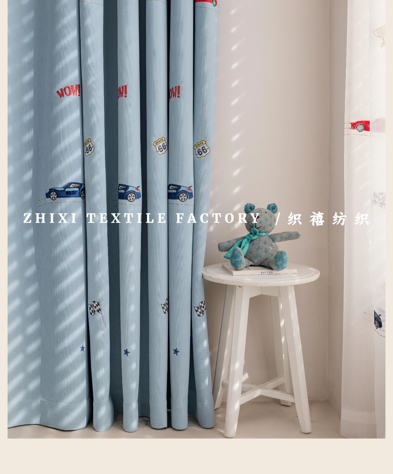 새로운 어린이 같은 자동차 자수 커튼 창 스크린 만화 스타일 어린이 방 침실 셔닐 빛 차단 커튼 거즈 커튼스토어 가기