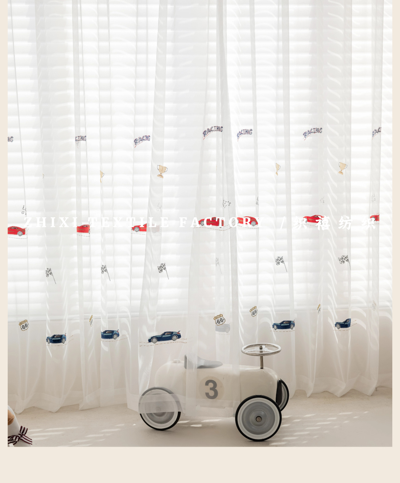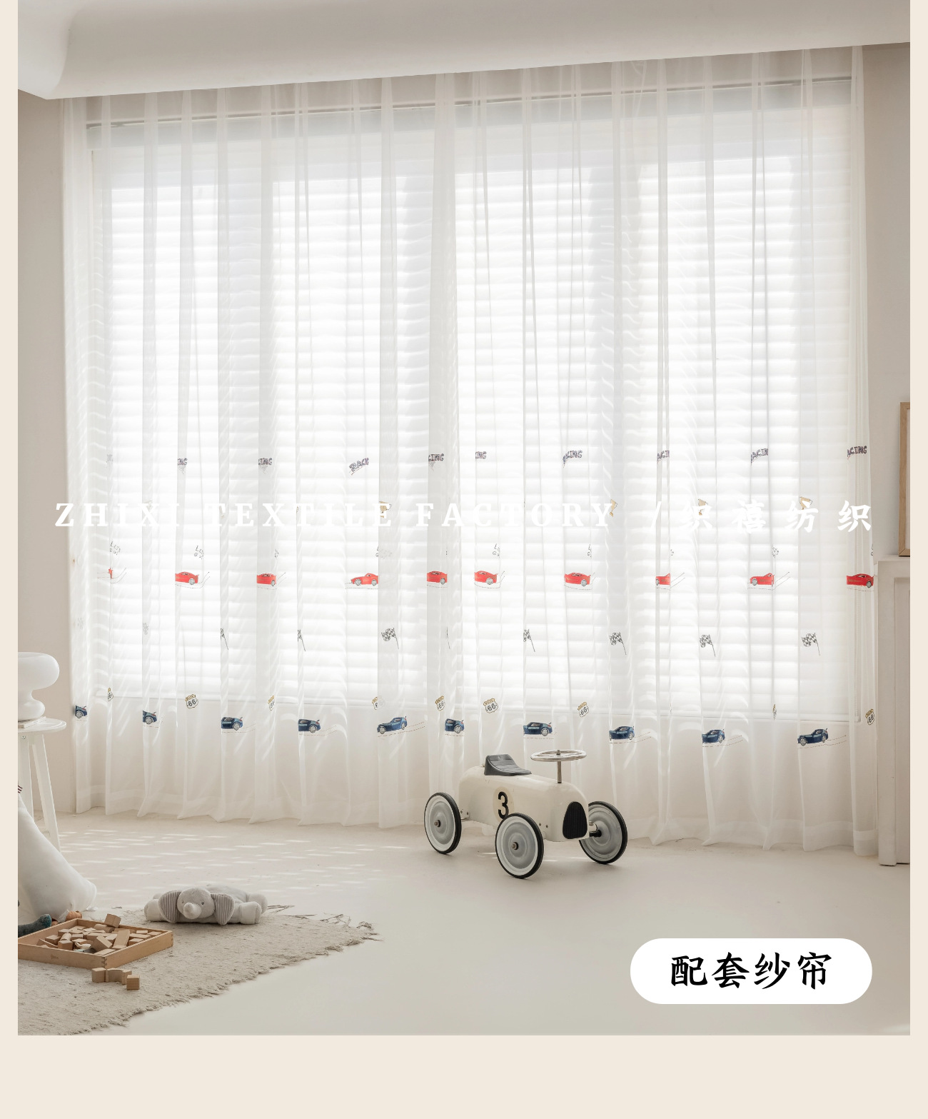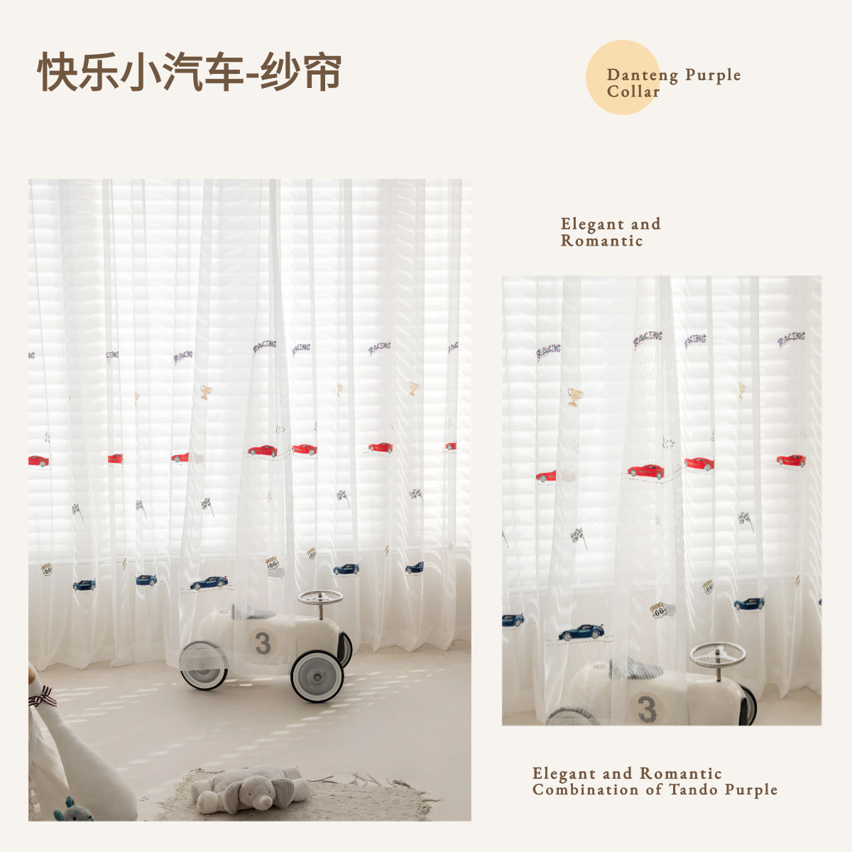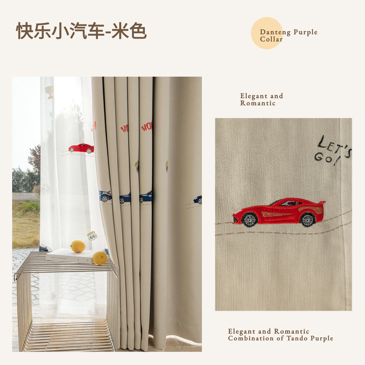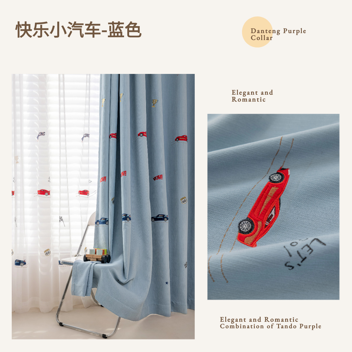 새로운 어린이 같은 자동차 자수 커튼 창 스크린 만화 스타일 어린이 방 침실 셔닐 빛 차단 커튼 거즈 커튼